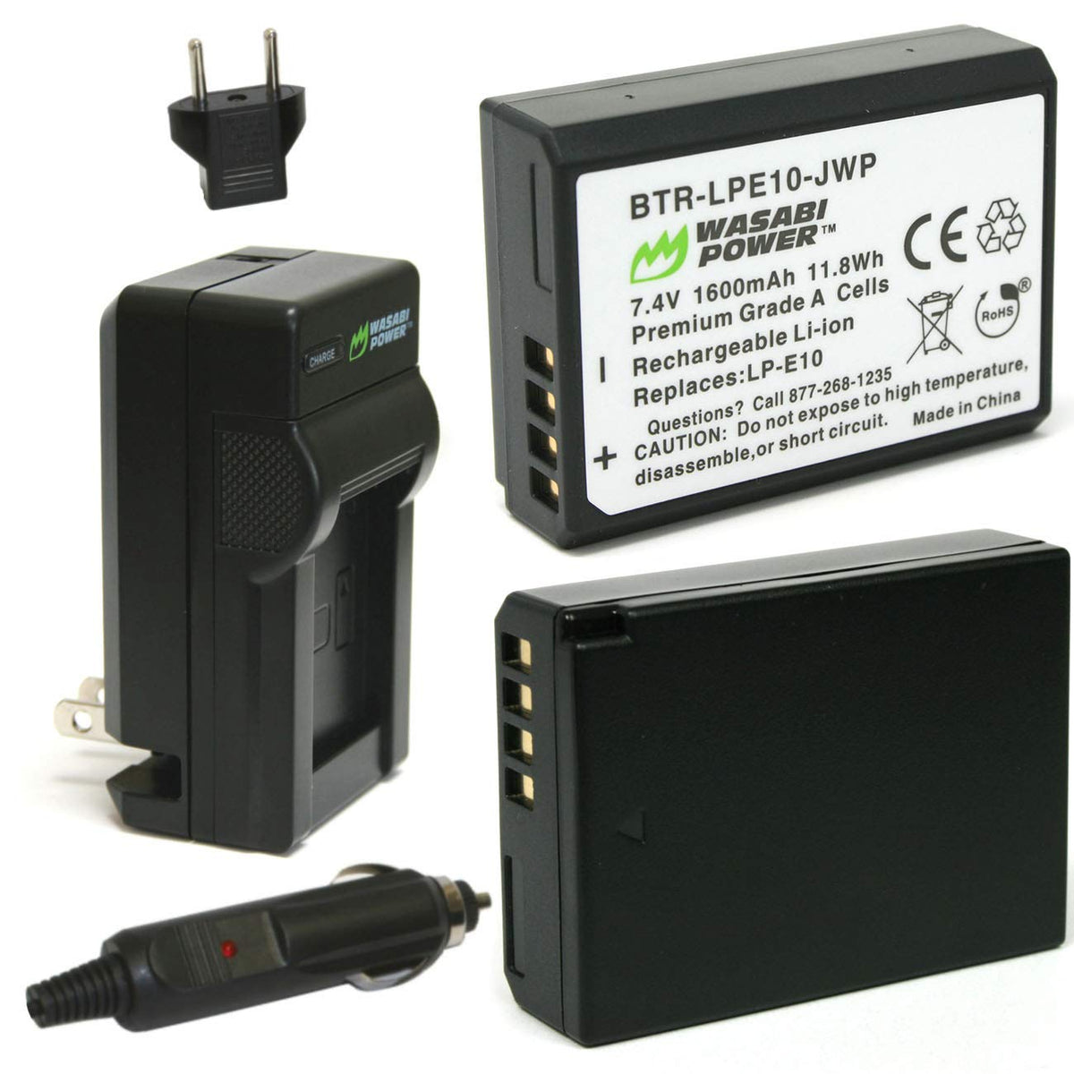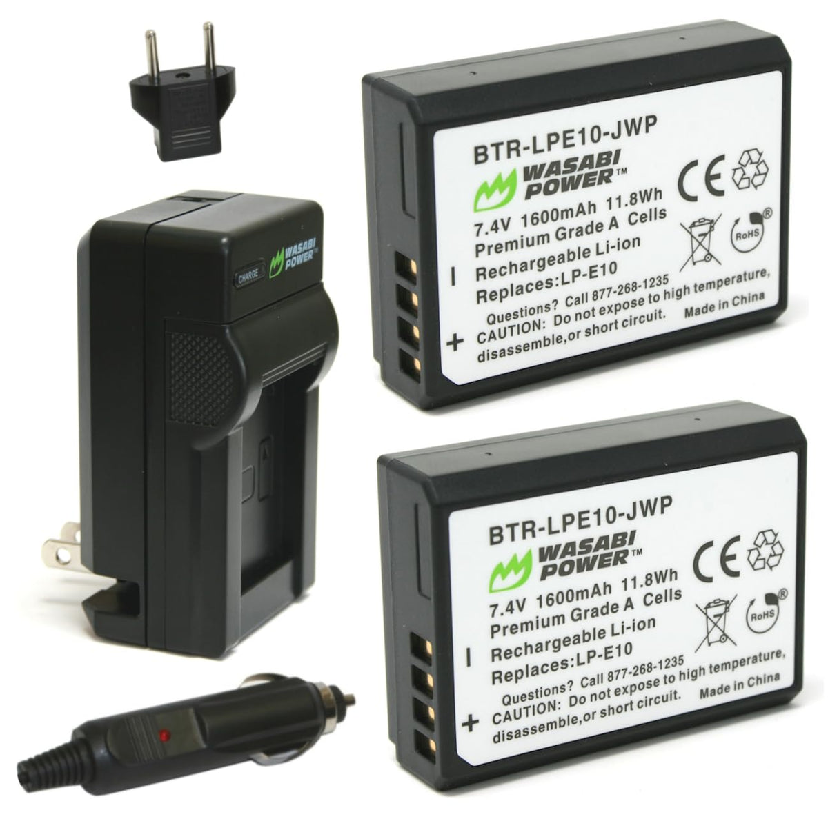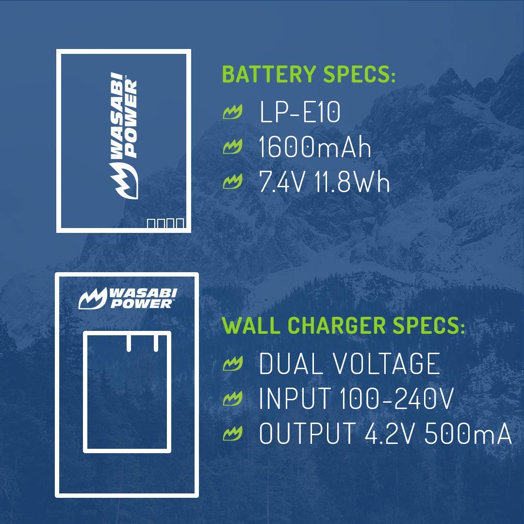 Wasabi Power LP E10 Battery for Canon EOS Rebel T7, T6, T5, T3, T100 (2 Pack and Charger, 1600mAh)