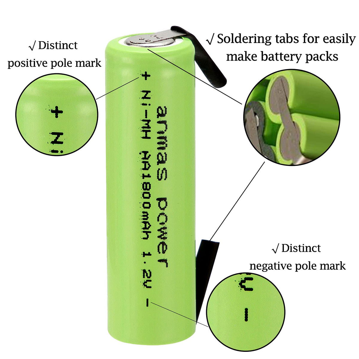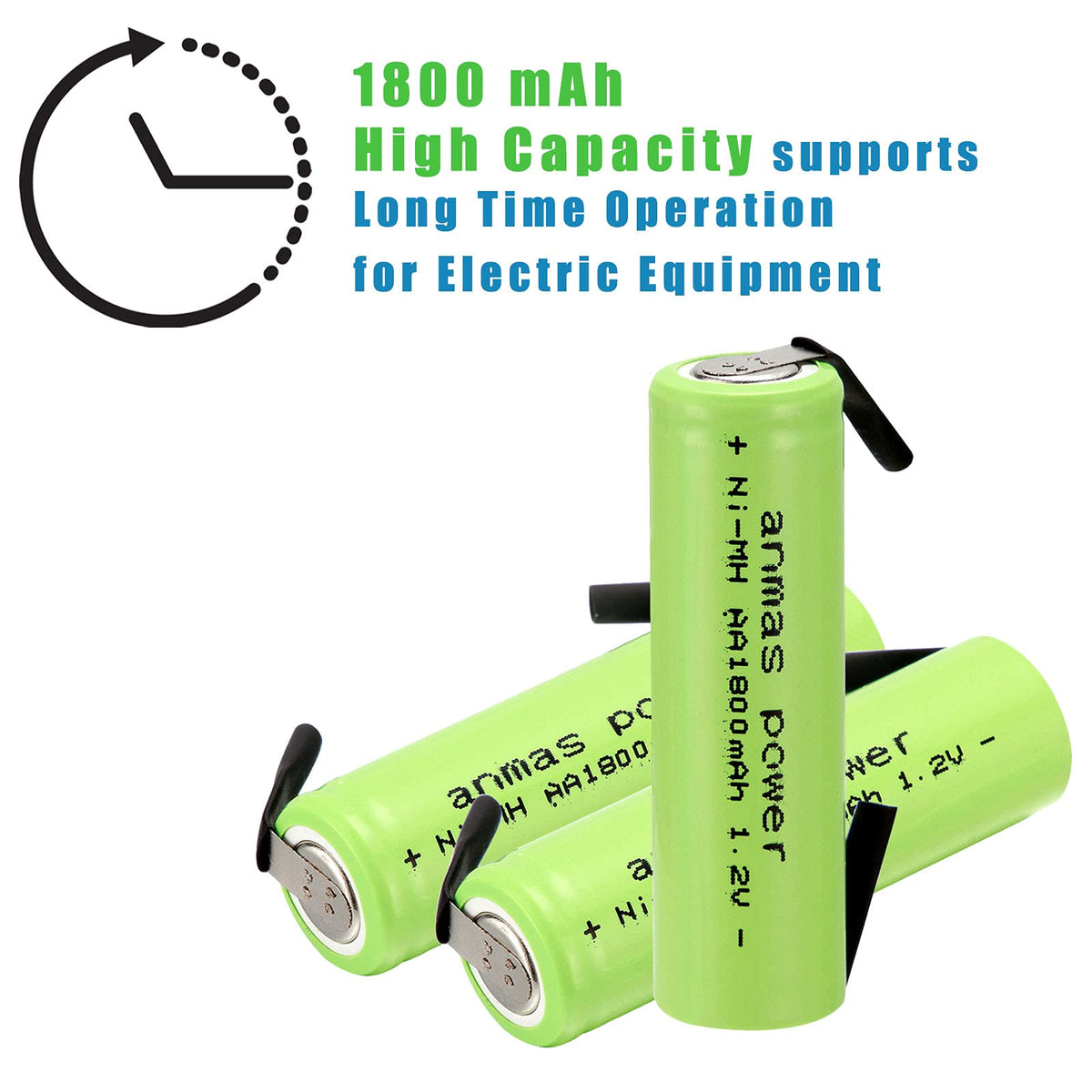 Nimh 1.2V Aa 1800 Mah Electric Shaver Rechargeable Battery With Solder Tabs Pack Of 5