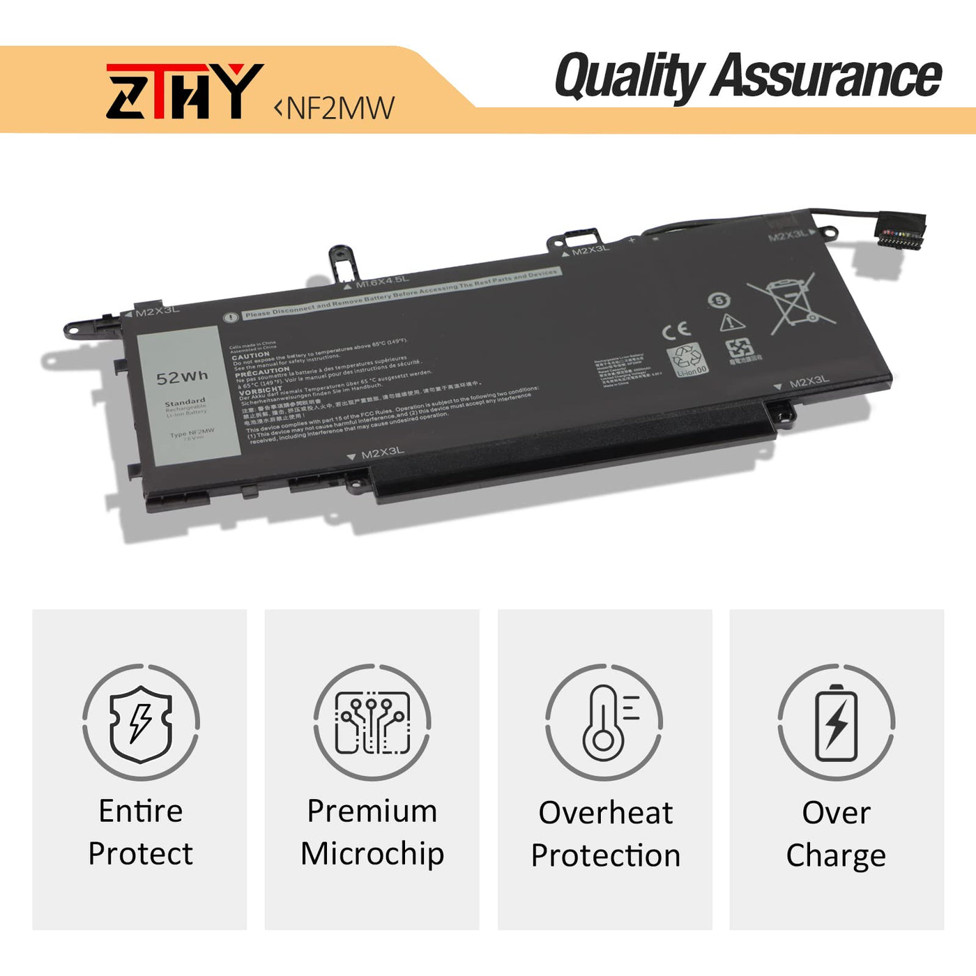 Q: How long does the ZTHY battery last on a single charge?A: The ZTHY NF2MW laptop battery has a capacity of 52Wh and can provide power for several hours, depending on the usage and settings of your laptop. It's designed for up to 500 recharge cycles for long-lasting performance.