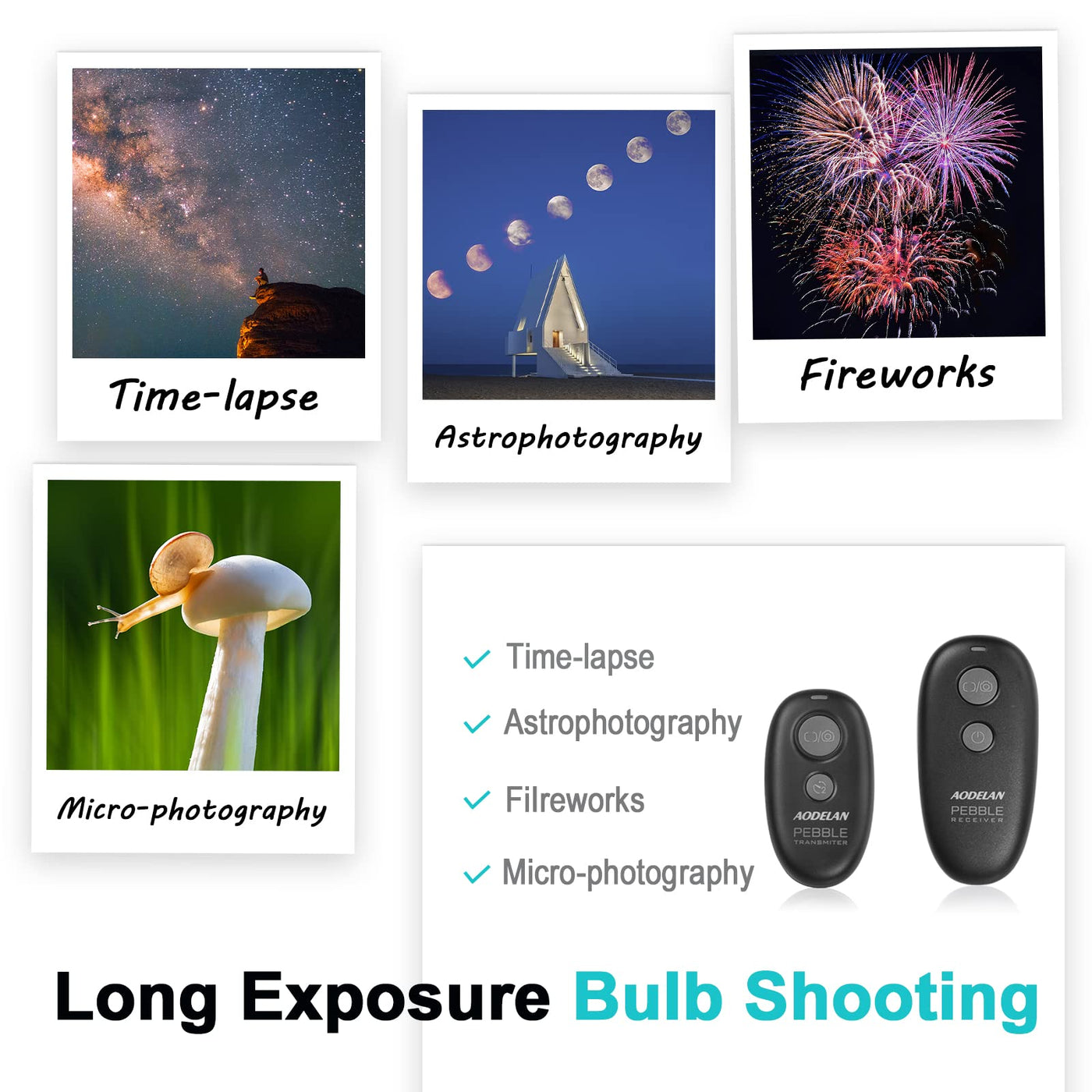 The Transmitter Can Control The Receiver Wirelessly To Perform Auto-Focus, Single Shot, Delayed Release Of 3S, Continuous-Release, And Long Exposure (Bulb); The Receiver Can Also Be Used As A Wired Shutter Remote To Do Auto-Focus, Single Shot, Continuous Release(Bulb). The Shutter Button On Transmitter And Receiver: Half Press To Auto-Focus, Fully Press To Take The Photo. Specification: System Mode: 2.4Ghz Wireless Control System Transmission Distance: Over 80M) Transmitter Dimension: L 67Mm X W 36Mm X H13Mm Receiver Dimension: L 90Mm X W 41Mm X H32Mm Weight: Transmitter 13G; Receiver 37G Excluding Batteries Box Contains: 1 X Wireless Shutter Remote Release Control Transmitter 1 X Wireless Shutter Remote Release Control Receiver 1 X Cr 2032 Battery For Transmitter 2 X Connecting Cord 2 X Lanyard Sling Please Note: Aaa Batteries Are Not Included.