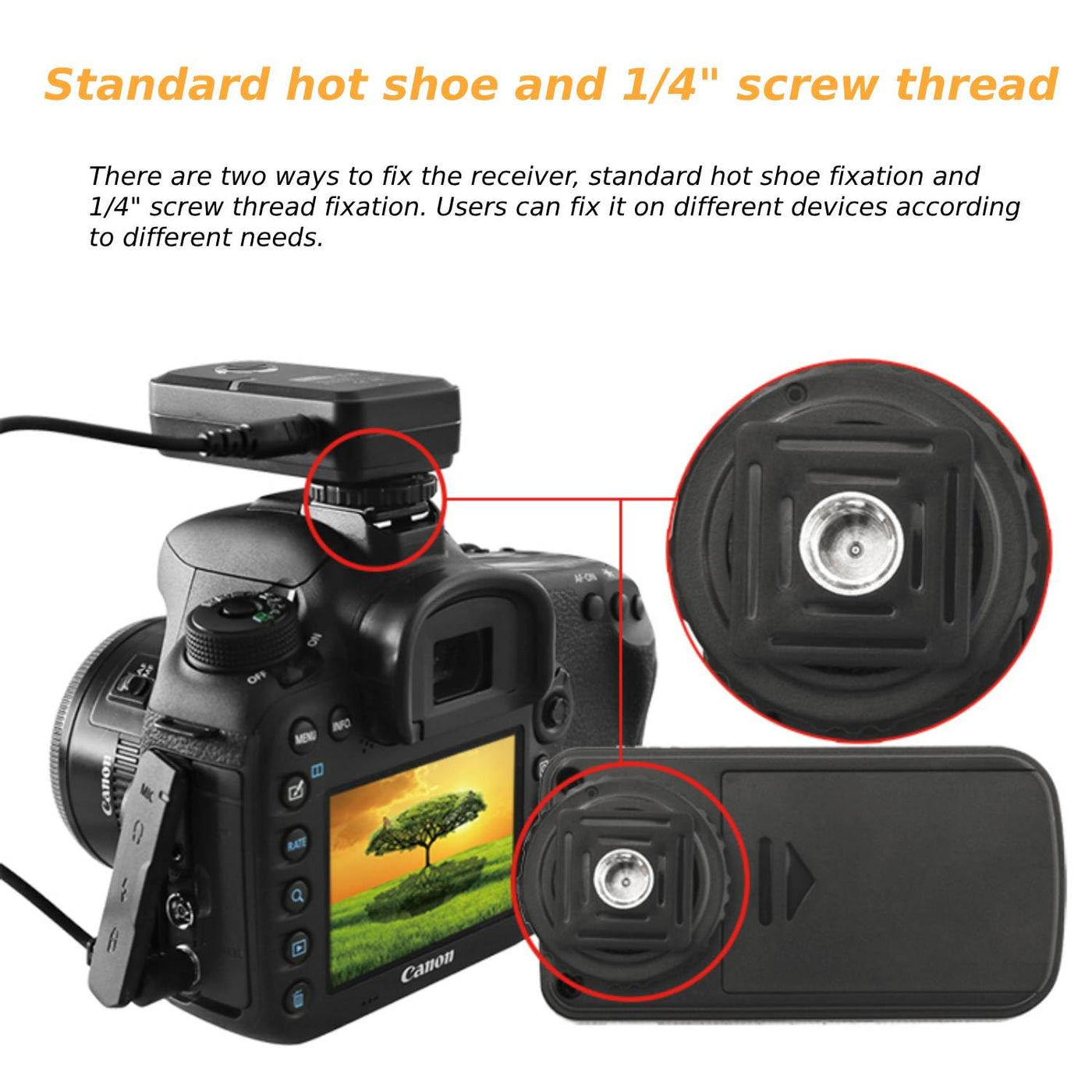 ?Compatible Cameras? Compatible For Sony Alpha A100, A200, A300, A350, A400, A450, A500, A550, A560, A580, A700, A850, A900, Slt: A33, A35, A37, A55, A57, A65, A67, A77, A99, Compatible For Konica Minolta Dimage A2, Dimage A1, Dimage 9, Dimage 7Hi, Dimage 7I, Dimage 7, Dimage 5, Dimage 4, Dimage 3, Dynax 7D, Dynax 5D | Compatible For Sony A99Ii, A99V, A77Ii, A7Iii, A7Riii, A58, A68, A7, A7Ii, A7R, A7Rii, A7S, A7Sii, A3000, A5100, A5000, A6000, A6300, A6500, Nex-3Nl, Rx0, Rx1Rii, Rx10Ii, Rx10Iii, Rx10Iv, Rx100Ii, Rx100Iii, Rx100Iv, Rx100Vi, Hx300, Hx400, Hx400V, Hx50V, Hx60V, Hx60 ,Hx90, Hx90V, Hx80,Ilce-Qx1, Dsc-Qx30, Dsc-Wx500, Rx10M3, Rx1Rm2, Rx100M4, Rx100M5, Rx10M2, Wx500, Hx60, Rx100M2, Rx100M3, Ilca-77M2, Ilce 6300, Ilce 6500, Ilce-7Sm2, Ilce-7Rm2, Ilce 5000, Ilce 5100, Ilce 6000, Ilce 7, Ilce 7M2, Ilce 7R, Ilce 7S | ?The Free Global 2.4G Channel? The Shutter Remote Control Avoids Camera Shake Caused By Camera Shutter Instability. Using 2.4Ghz Global Free Frequency Range, Its Reliability And Stability Are Improved. | ?3 Shooting Mode? Single Shooting, Bulb Shooting And 4S Delay Shooting, Also Control Multiple Receives And Cameras To Sync Shooting As Well. Interchangeable Cable Design To Allow You To Use It On Different Brand Cameras. | ?Low Power Consumption? Work With Two Pieces Aaa Batteries, It'S More Convenient To Purchase And Economical. Under Working Status. The Power Consumption Of Transmitter And Receiver Is Only 2Ma. (Batteries Are Not Included In The Package) | ?Standard Hot Shoe & 1/4' Screw Thread? There Are Two Ways To Fix The Receiver, You Can Fix It On Different Devices According To Different Needs.