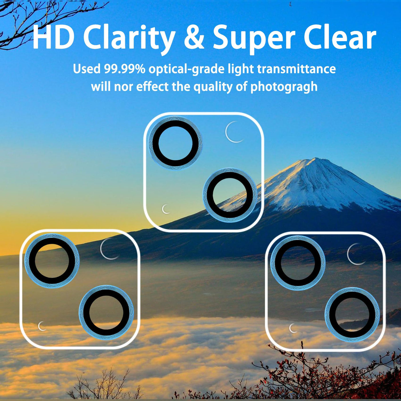 Q: Will this lens protector affect the quality of photos and videos?A: No, the Dengduoduo lens protector is designed with enhanced light transmission, ensuring that it does not disturb the original quality of your photos and videos, maintaining a 99.99% clarity.