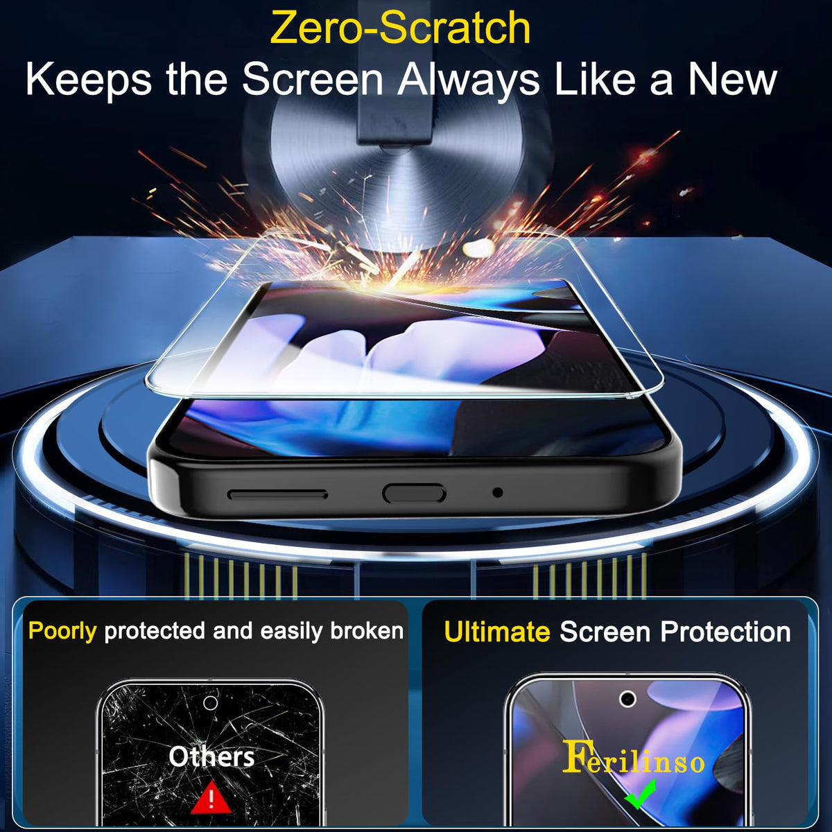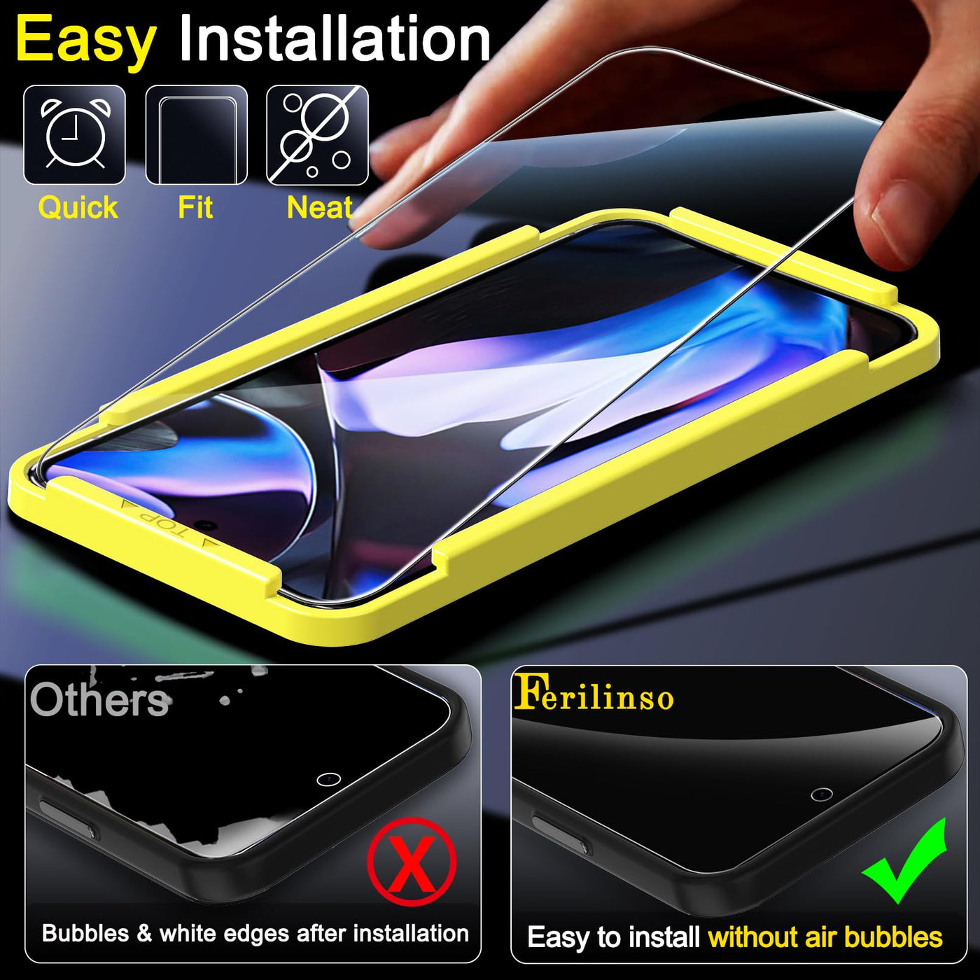 Please Note: After Installing The Protector, You Need To Re-Record Fingerprints[Very Important][Very Important]. In This Way, You Will Get A Perfect Fingerprint Unlock And Super Fast. The Ferilinso Bundle Includes: [3 Pack 9H+ Tempered Glass & 3 Pack Camera Protector] [Includes Mounting Frame And Cleaning Kit] [So Easy Installation]. Plus, Whatever Problems, You Can Send Us Information Through Amazon'S Message Center, We Will Provide You With Satisfactory Service Within 24H. | Invisible Protection, Full Covers The Phone'S Screen: Simulating Phone'S Screen Design, Ferilinso Envelops The Screen'S Every Curve With A Reinforced 1:1 3D Curved Black Edge, Getting The Most Vulnerable Screen Edge Fully Covered. Also, It Is Visually Invisible As It Blends Seamlessly With The Screen! Leaving No Corners Uncovered And Preventing Dust And Scratches From Invading, While Also Being Suitable With 99.99% Cases. | Unbreakable 9H+ Glass, 2Nd Screen Of Your Phone: Unmatched Shatterproofness And Durability, It'S Designed Specifically For The Google Pixel 9 Pro Xl Screen. 9H+ Tempered Glass Material Is The Core, Which Is Widely Used In Aerospace And Military For Its ?Shatterproof ?Scratch & Wear Resistant ?Durability Is 8-10 Times Superior To Others. Thus, 9H+ Glass Creates A 2Nd Tough Screen For Your Google Pixel 9 Pro Xl. | Ultra Hd Bare Screen Experience, Fingerprint, Smudge Free: Adopting Exclusive Coating Technology Providing Maximum 99.99% Optical Clarity For Best Visual Feast Brought By The Phone Screen(Face Id Support: Premium, High-Transparency Glass Means You'Ll Be Able To Use Face Id Just Like Normal). Plus, Thanks To The Special Ferilinso-Silk Technology To Prevent Smudges And Fingerprints Oil, Reducing Up To 98% Of Marks On Your Screen, Keeping Your Google Pixel 9 Pro Xl Screen Clean And New. | Powerful Lens Protection: The Lens Of The New Google Pixel 9 Pro Xl Cell Phone Stands Out In Particular, And To Better Protect The Exposed Lens, You Are Provided With 3 Pack High-Quality Lens Protectors. It Is Made Of Sapphire Material And 9H+Glass With Unparalleled Resistance To Daily Wear And Tear And Impact, Providing Military-Grade Protection. The High Light Transmittance Sapphire Material Ensures That Your Photography Maintains Its True Essence, Vibrant Colors And Crisp Details. | Compatibility: Only Fits For Google Pixel 9 Pro Xl, 6.8 Inch. Please Make Sure Your Phone Is Google Pixel 9 Pro Xl, Not Other Phone Models.