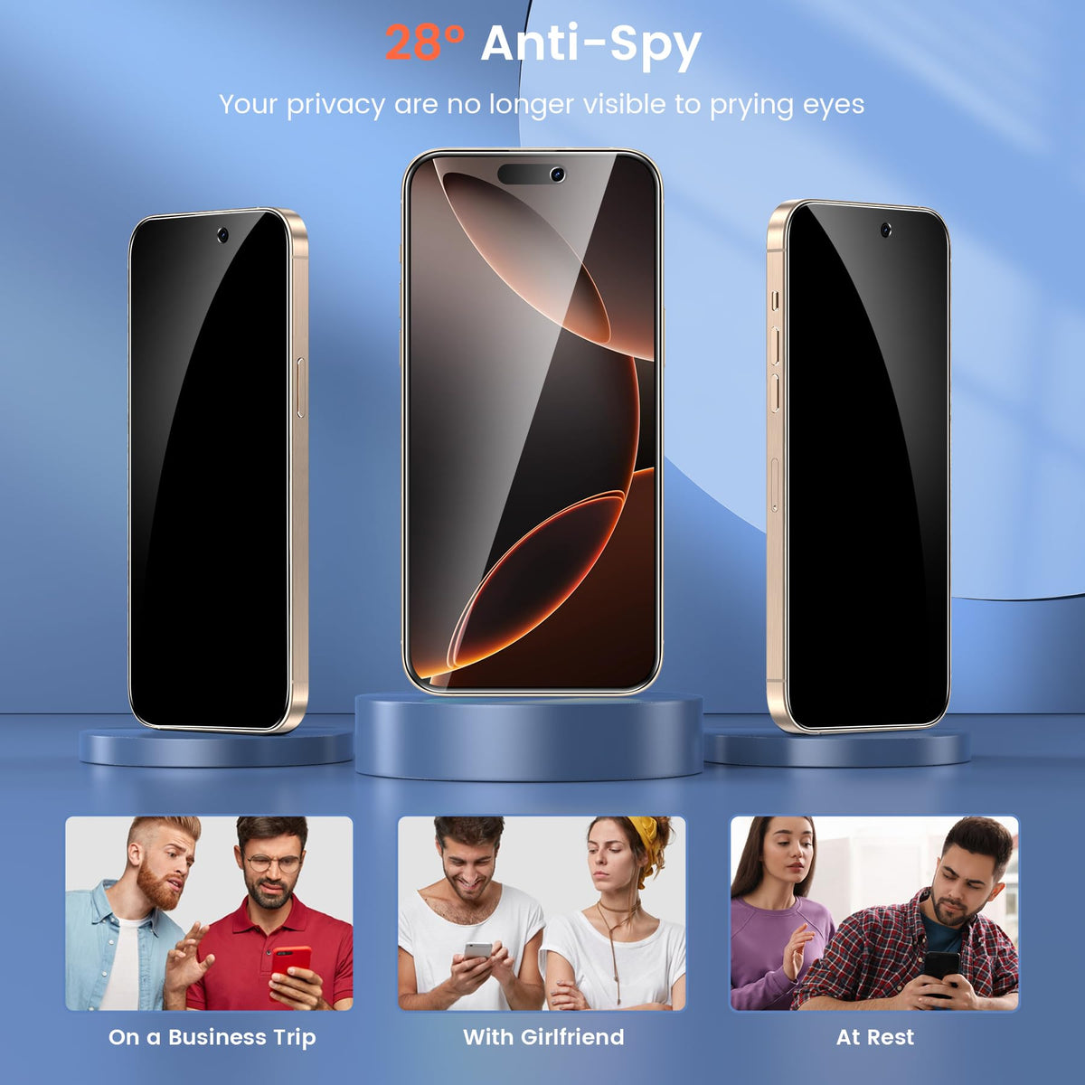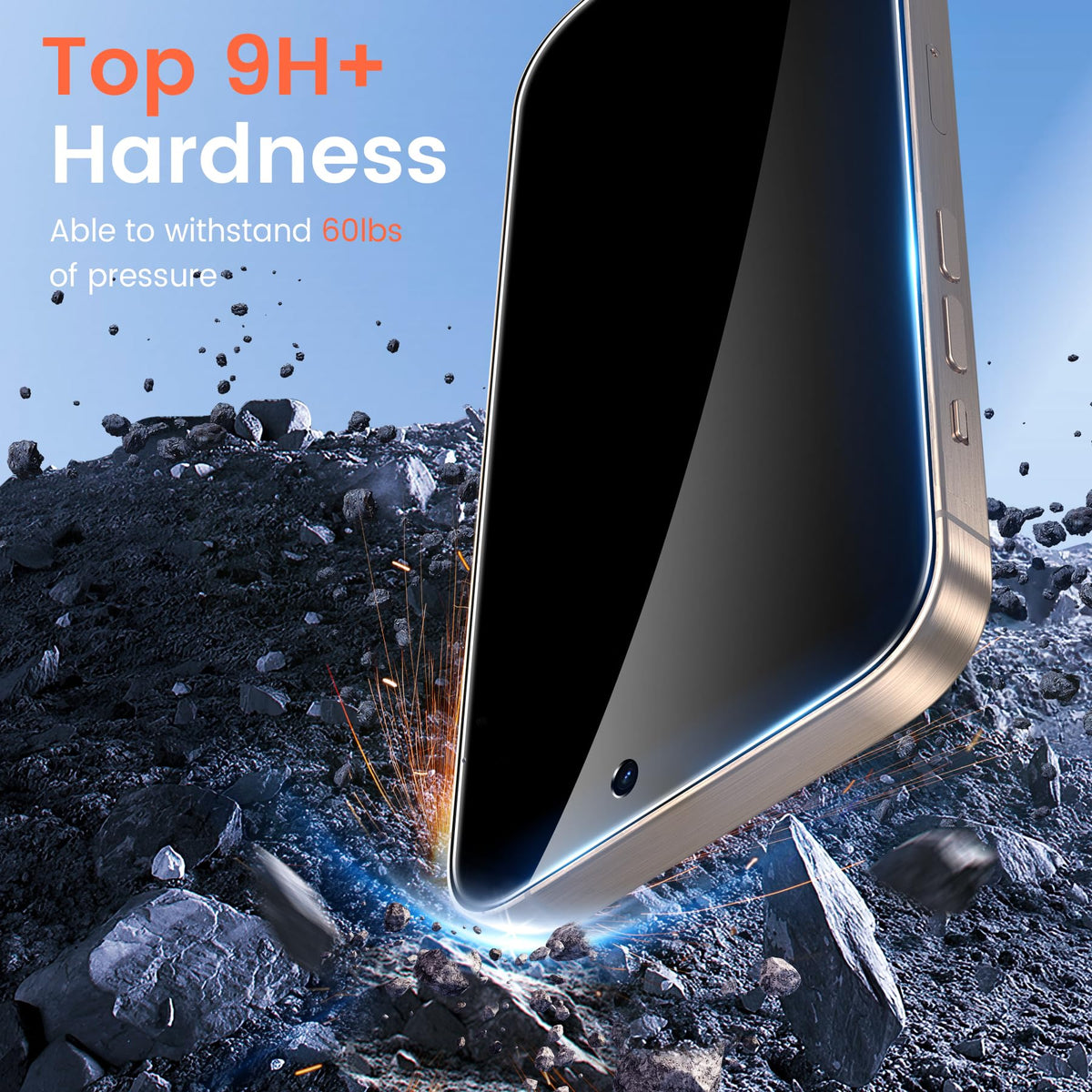 Q: What makes the Fotbor iPhone 16 Pro Max privacy screen protector effective?A: The Fotbor privacy screen protector is made from 9H+ hardness tempered glass, which provides excellent privacy protection by limiting visibility from side angles. This feature is especially beneficial in crowded places like buses and subways, ensuring your personal information remains confidential.