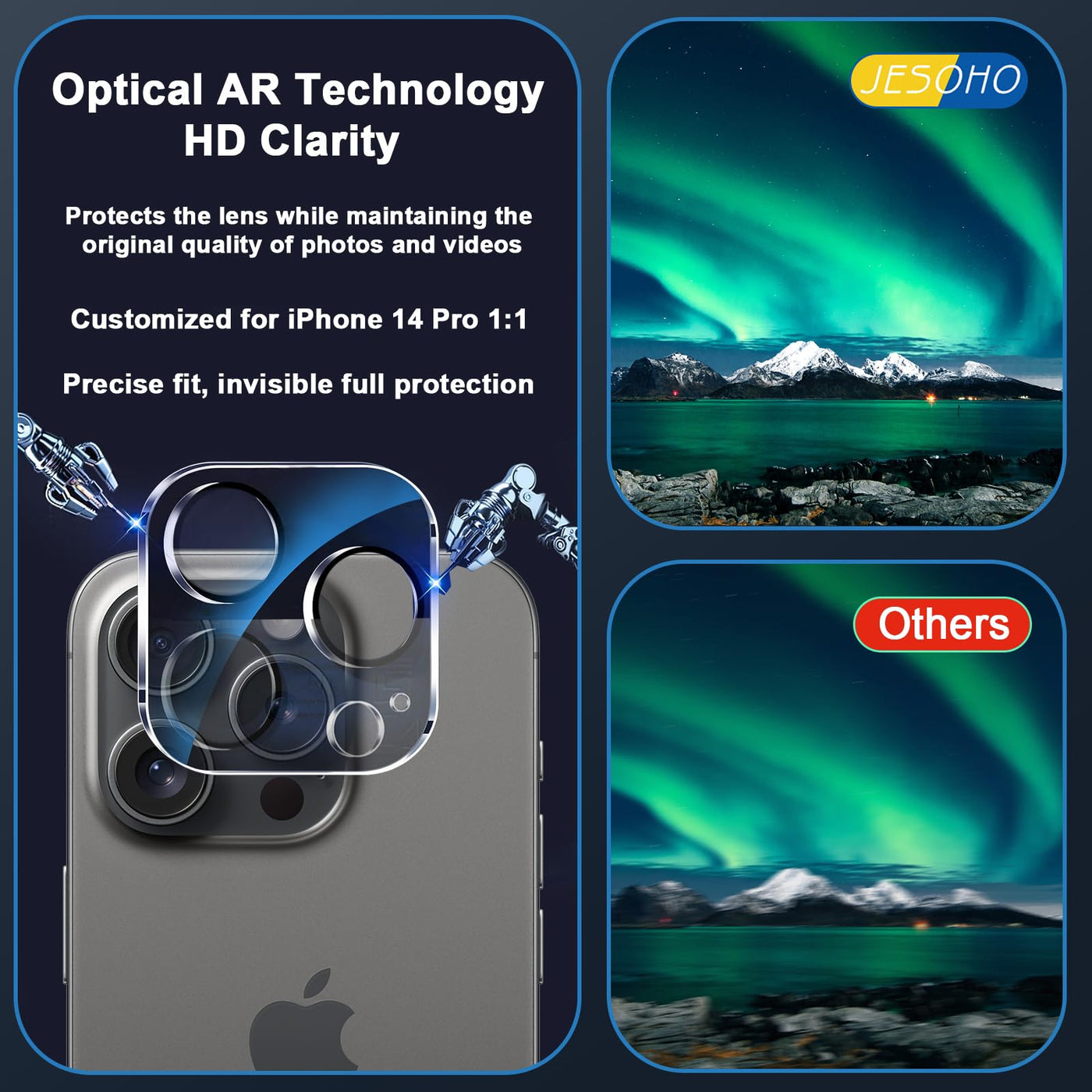 Jesoho Blue Light Screen Protector For Iphone 14 Pro (6.1'')*2 Pack + 2 Pack Camera Lens Protector,Eye Protection,Hd Blue Light