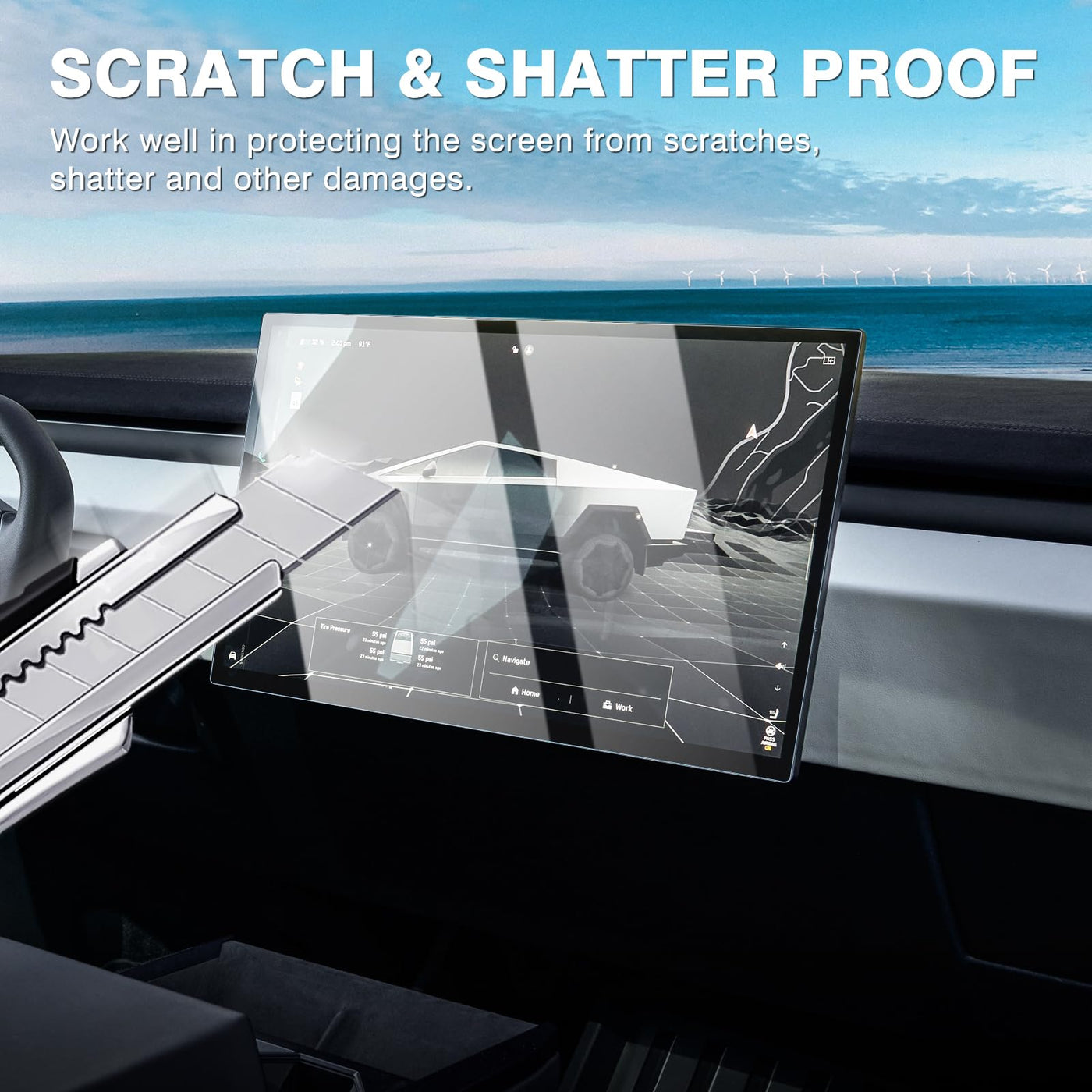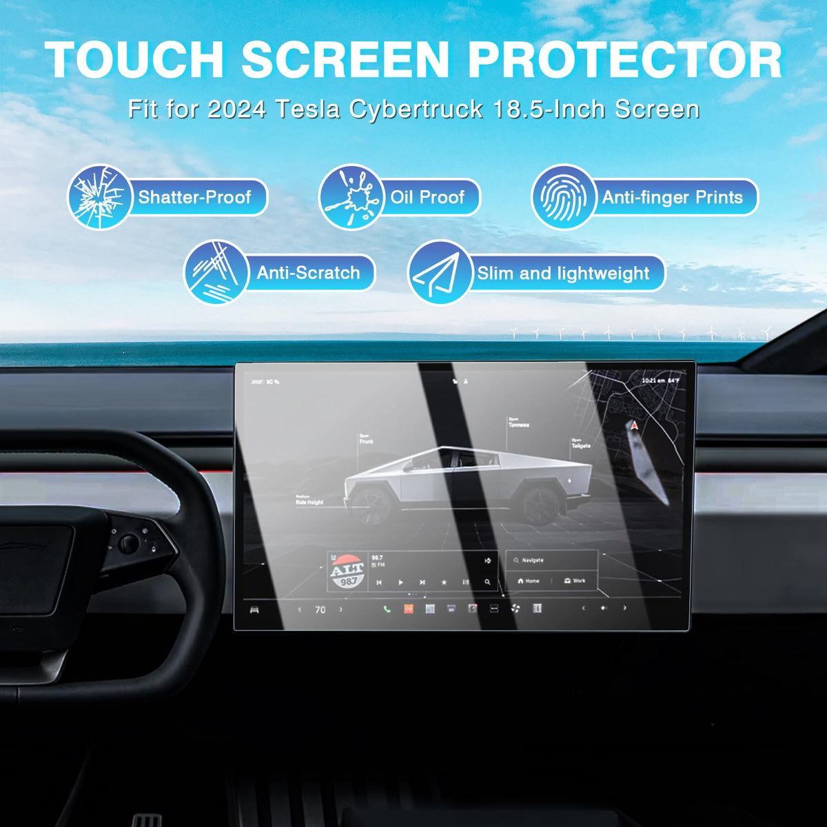 Karltys For 2 Pack 2024 2025 Tesla Cybertruck Screen Protector Anti Glare, Touchscreen Tempered Glass Protector For 2024 Cybertruck Accessories 18.5 Inch Dashboard Protective Film Hd Anti Scratch