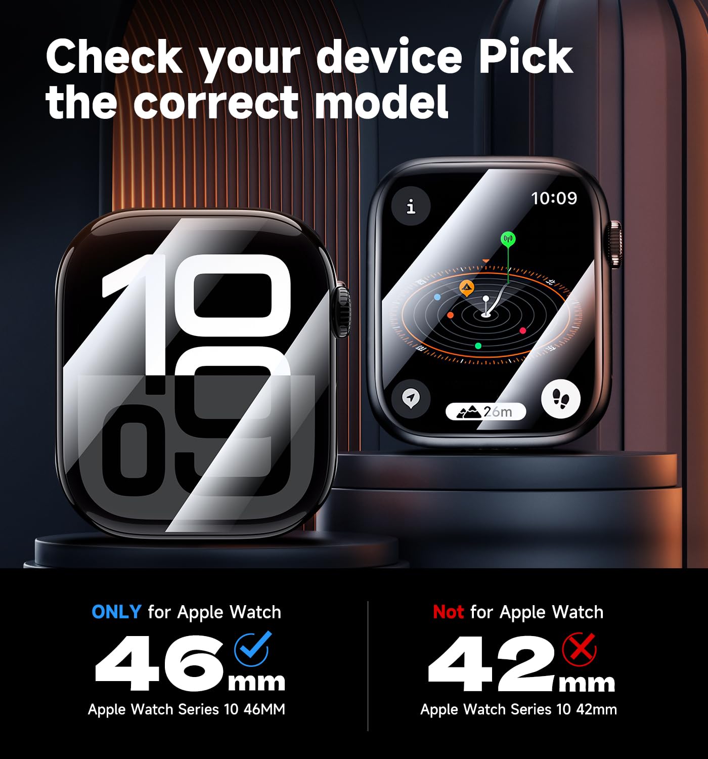 Q: Is the MAGIC JOHN Screen Protector compatible with other Apple Watch models?A: No, the MAGIC JOHN Screen Protector is specifically designed for the Apple Watch Series 10 46MM. Ensure to check the model and size on the back of your watch before purchasing to avoid compatibility issues.
