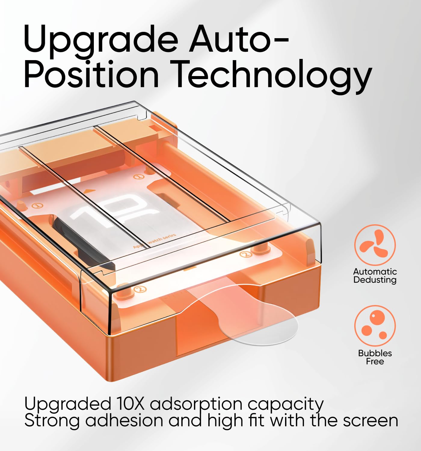 Q: How does the Automatic Align Tech work for installation?A: The Automatic Align Tech allows for easy installation without removing the watch strap. Simply cover the screen protector over your Apple Watch and pull it down; the protector will automatically align itself and release air bubbles quickly, making the installation process hassle-free.