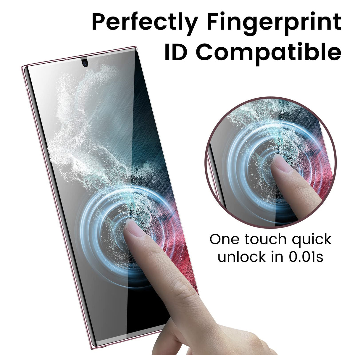 Q: Will the screen protector affect fingerprint recognition on my Galaxy S22 Ultra?A: No, the MOHAVE screen protector is 100% compatible with the ultrasonic fingerprint scanner of the Galaxy S22 Ultra. You just need to re-scan your fingerprint after installation for optimal performance.