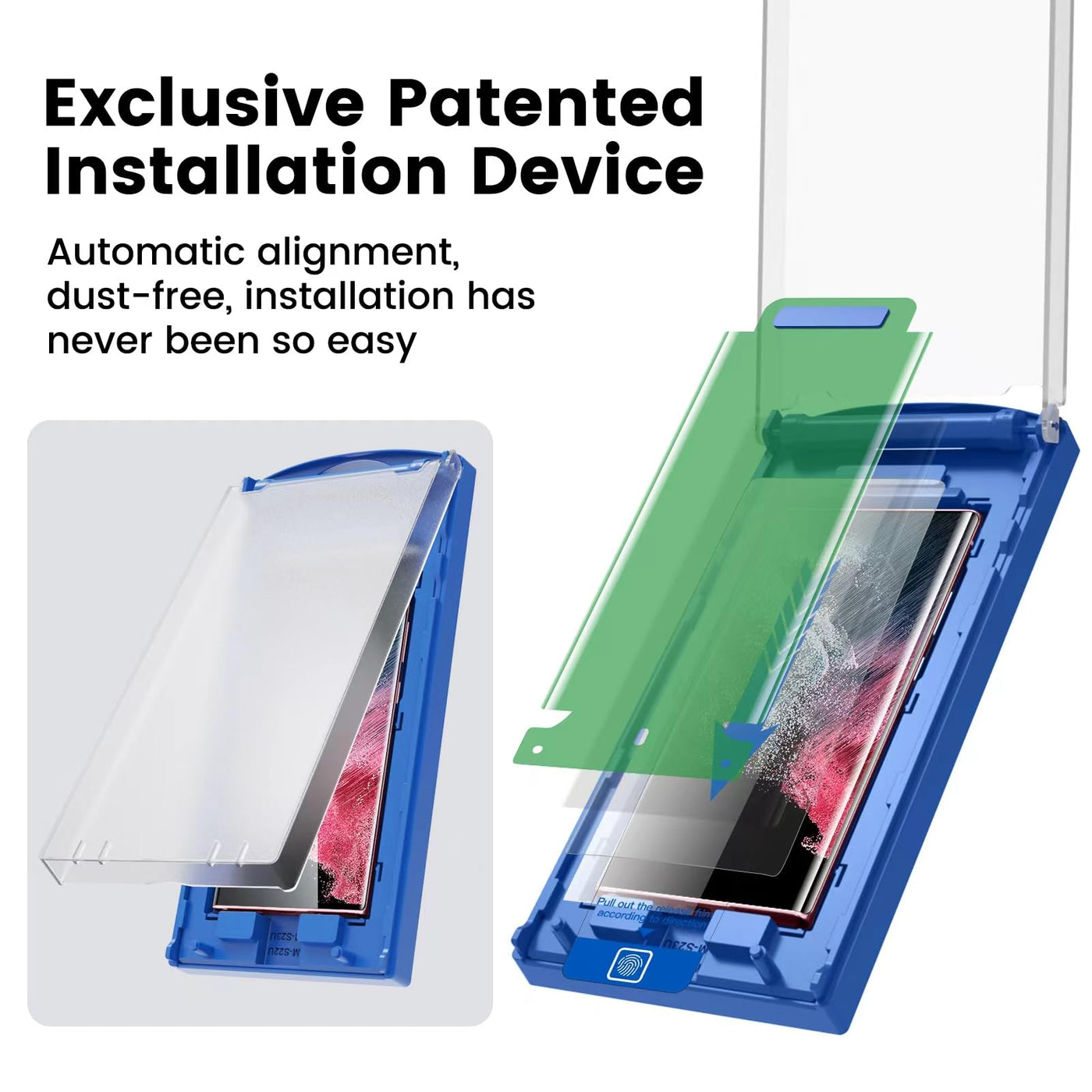Mohave 2 Pack [Auto Alignment/Dust Removal] Screen Protector For Samsung Galaxy S22 Ultra 5G 6.8?, 3D Curved Hd Clear Film, 7H Hybrid Material, 100% Ultrasonic Fingerprint Id Compatible, Case Friendly