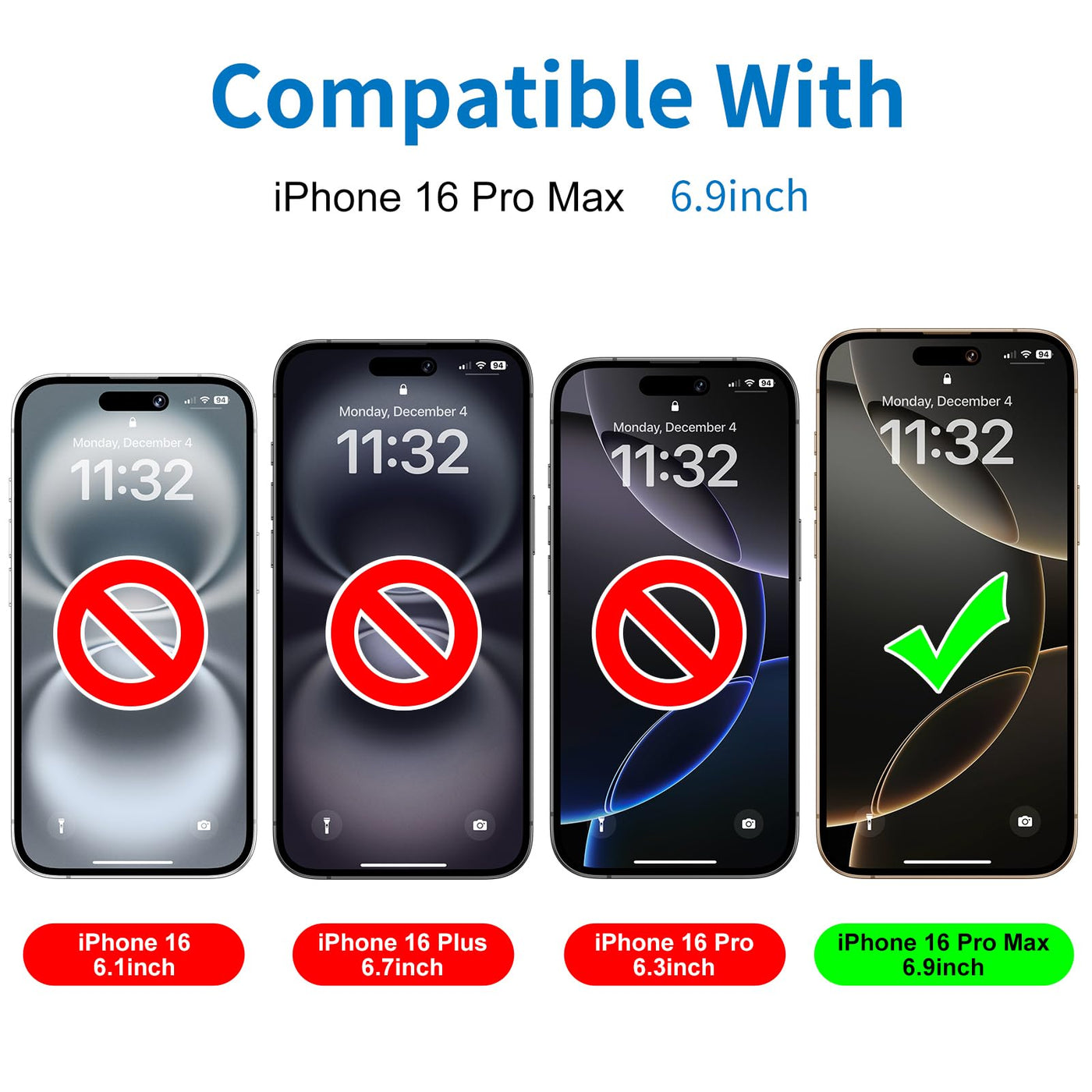 Q: Is the Mothca Matte Glass Screen Protector compatible with other iPhone models?A: No, the Mothca Matte Glass Screen Protector is specifically designed for the iPhone 16 Pro Max with a 6.9-inch display and is not compatible with any other models.