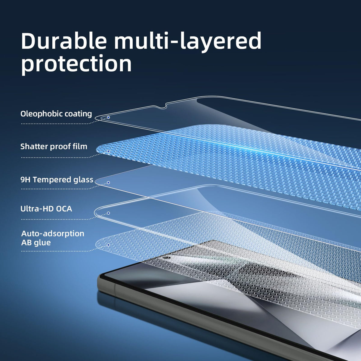 Q: What is the thickness and material of the NEW'C screen protector?A: The NEW'C screen protector is made from high-quality 0.33mm thick tempered glass, providing excellent durability and protection against scratches.