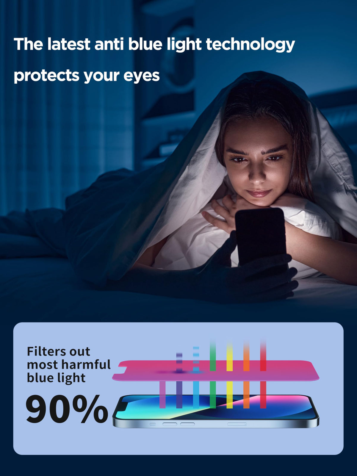 Q: Does this screen protector reduce eye strain?A: Yes, the PDDKISS privacy screen protector filters out 90% of blue light, which helps reduce the risk of eye strain, making it an ideal choice for extended phone use.