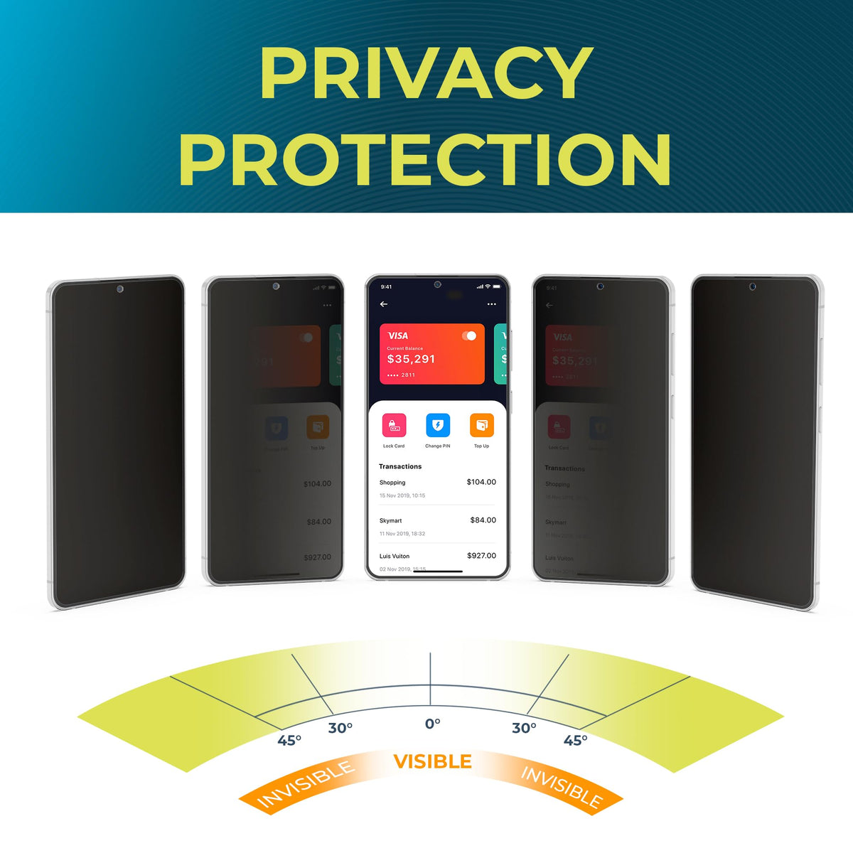 Q: How does the privacy feature work on this screen protector?A: The privacy feature of the Power Theory screen protector works by limiting the viewing angle to 25°, ensuring that only individuals directly in front of the screen can see the content, while it remains hidden from those at an angle.
