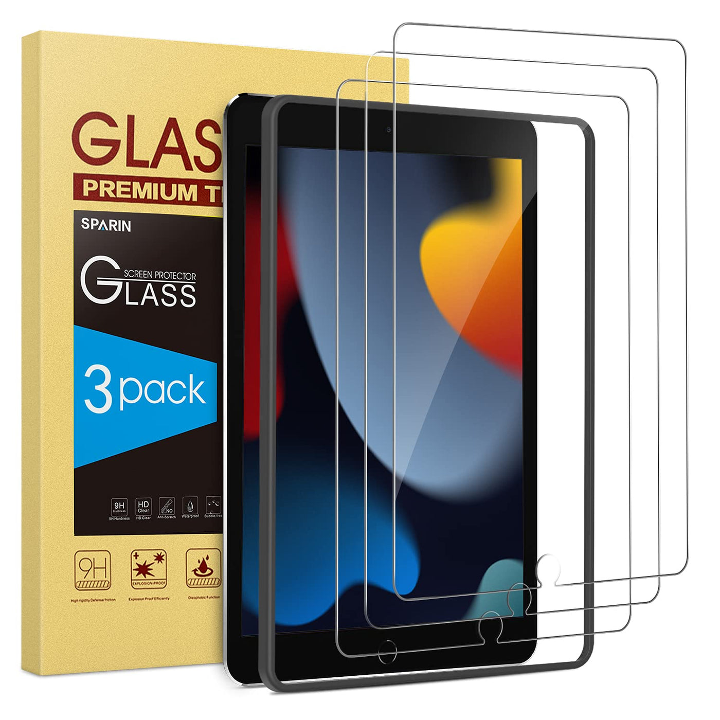 Sparin (3 Pack Screen Protector Compatible With Ipad 9Th 8Th 7Th Generation, Tempered Glass Compatible With Ipad 10.2 Inch 2021