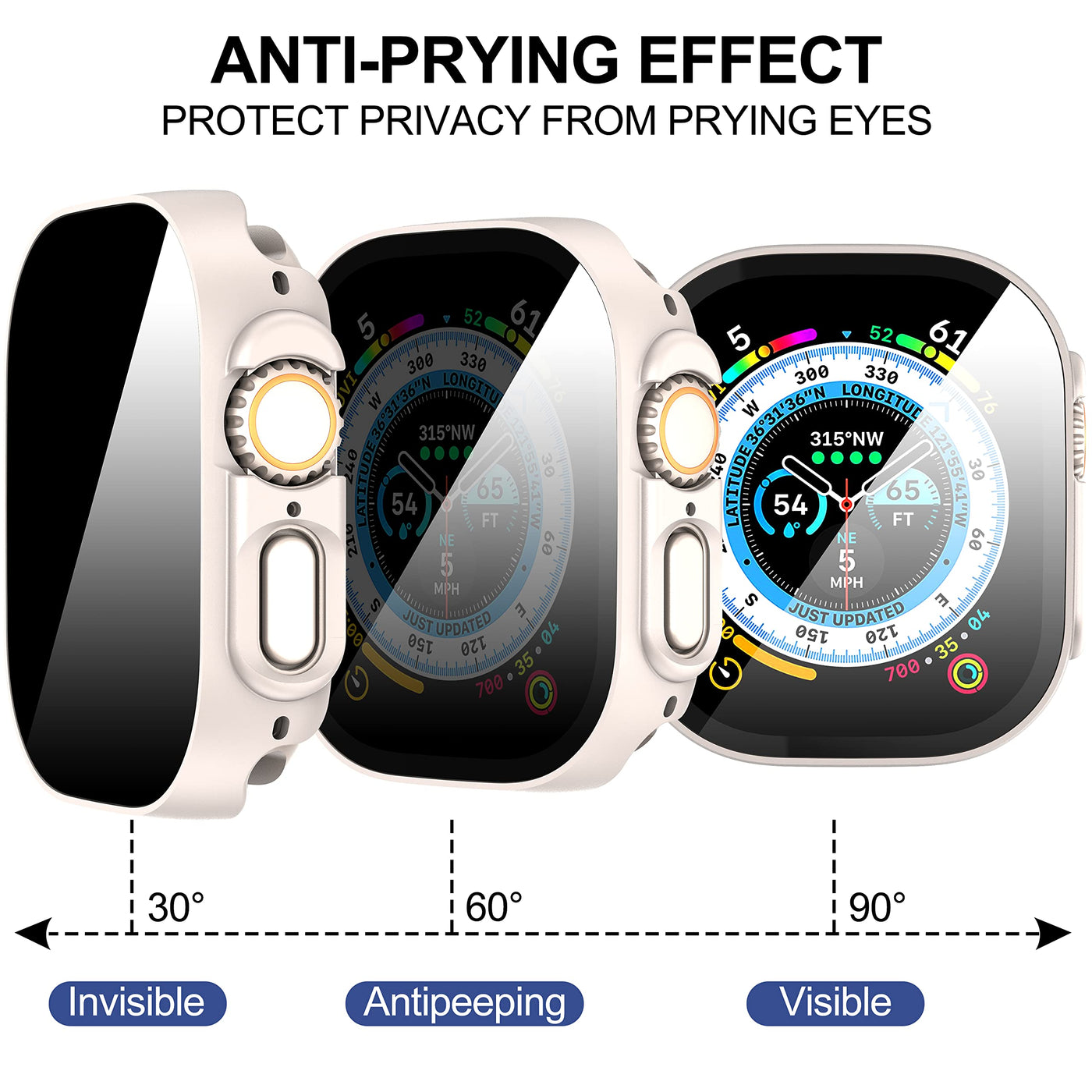 Suoman 3 Pack For Apple Watch Ultra 49Mm Privacy Screen Protector Case, [Anti Peeping] Ultra Thin Tempered Glass Case Cover For