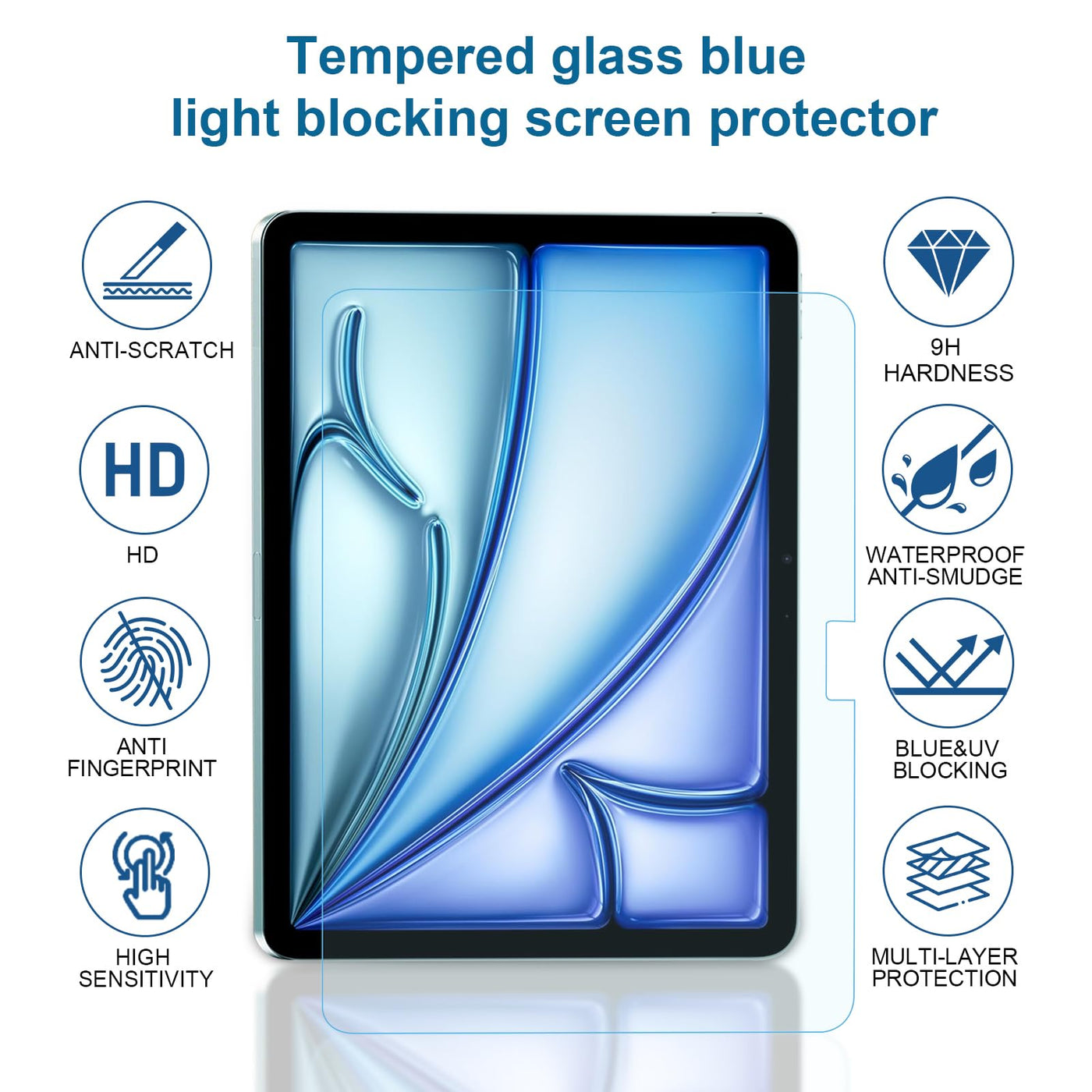 2 Pack 2 In1 Tempered & Anti Blue Light Screen Protector For Ipad Air 13Inch 2024 6Th Gen M2,Compatible With Apple Pencil,Anti-Glare 9H Hardness/Bubble Free/Anti Scratch/Anti-Fingerprint