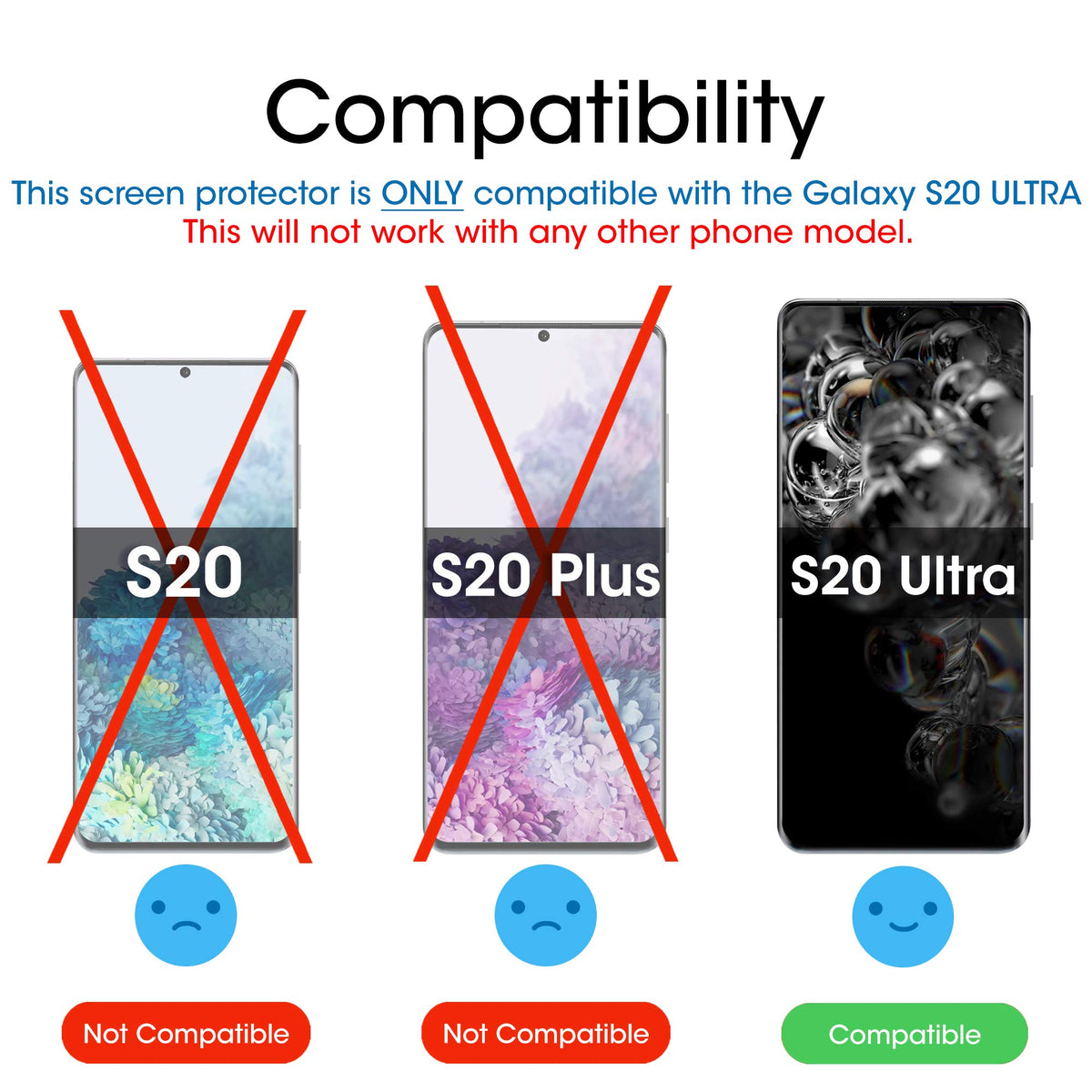 Amfilm Ultra Glass Screen Protector For Galaxy S20 Ultra, 2 Pack, Tempered Glass, Fully Compatible With Ultrasonic Fingerprint S
