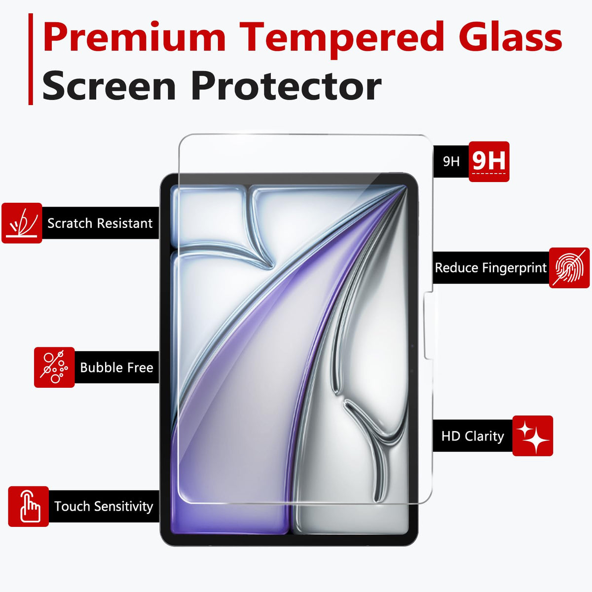 Bersem Screen Protector Compatible With Ipad Air 11 Inch 2024 (M2), Tempered Glass, Ultra Clear, Anti Scratch, Case Friendly, Ez