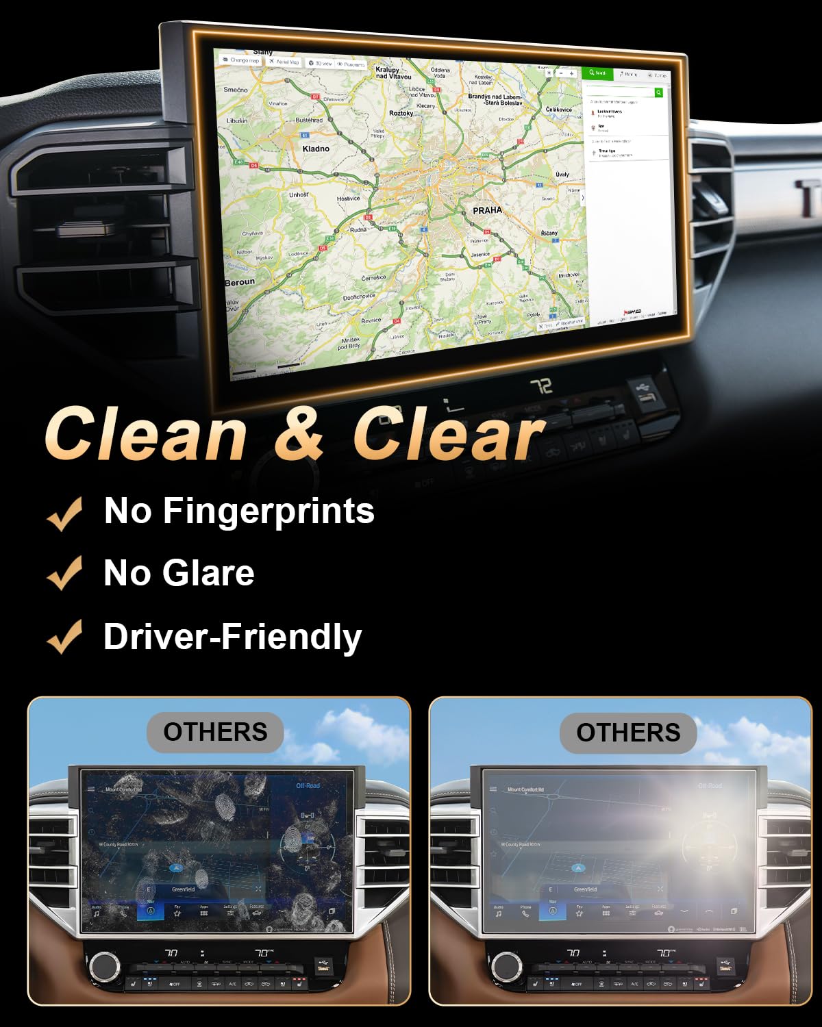 Product Name:Ecozen Screen Protector For Tundra 2024 2023 2022 Matte 14-Inch Tempered Glass Touchscreen Protector Anti Fingerprints&Glare 9H Gps Screen Protector For Tundra Accessories With Install Kit Product Description: ?Perfect Fit?9H 14 Inches Tempered Glass Screen Protector Designed For Tundra 2024 2023 2022(Limited/Platinum/1794 Edition/Trd Pro), 2024 2023(Capstone/Sr5). Matte Touchscreen Protector For Tundra And Comes With An Installation Kit, Easy To Install. ?No Fingerprints & Anti Glare?Screen Protector'S Oleophobic And Hydrophobic Layers Effectively Anti Fingerprints And Smudges. Reflective Layer Of The Tempered Film Can Absorb Bright Light And Anti Glare On The Screen! Keep Screen Clean And Clear For Tundra. ?Easy To Install?Ecozen Screen Protector Comes With Cleaning Tools And Installation Tools. Including Wet Wipes, High-Fiber Dusting Cloth, Dust Removal Sticker And Positioning Labels For Fixation. Help You Complete The Installation Quickly And Perfectly. Good For Tundra Accessories. ?High Quality?9H Hardness Tempered Glass Touchscreen Protector For Tundra 2024-2022. Keep The Screen Brand New. Effectively Prevent The Protective Film From Bursting And Splashing. Designed For Tundra Accessories. ?Sensitive Response?No Matter What Driving Environment You Are In. Smooth Feel And Responsiveness Ensure You Can Control The Screen The Way You Want, Even When Wearing Gloves. Screen Protector For Tundra Will Not Operate Insensitively.