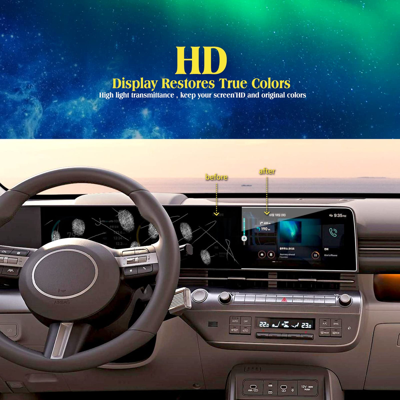 Eueky 2Pcs 2024 Kona Screen Protector Design For Hyundai Kona 2024 Dual 12.3 Inch Touch Screen Kona Screen Protective Film Kona