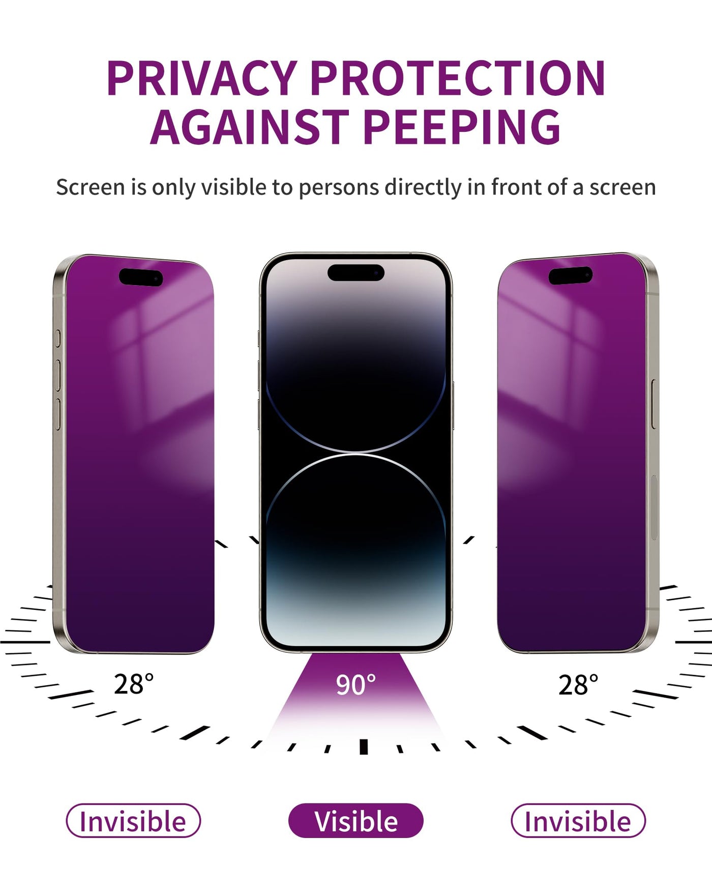 Privacy Screen Protector For Iphone 13Promax / 14 Plus 5G 6.7'' Features: 2 Pack: Includes 2 Privacy Screen Protectors. Gradient Light: The Screen Protector Displays A Glitter Purple-Rose Gradient When Viewed From Different Angles Under Light. Anti Bluelight: Utilizes Blue Light Filtering Technology To Remove Blue Light Emitted From Your Phone Screen. It Effectively Filters Out 95% Of Blue Light While Allowing Non-Harmful Light Through, Helping Prevent Sleep Disorders And Eye Strain. Anti Peep: Protects Your Private And Sensitive Information From Strangers In Public Places Such As Buses, Elevators, And Metros. The Screen Is Only Visible To Individuals Directly In Front Of It. Impact & Scratch Protection: Made With High-Quality Tempered Glass That Has A Hardness Rating Of 9H, Providing Scratch Resistance And Helping To Prevent Your Iphone13 Promax Screen From Breaking. Shatterproof Design: Designed To Resist Shattering Or Splintering. In The Event Of Screen Damage, The Pieces Will Stick Together For Safety. Sensitive Touch: This Tempered Glass Provides Privacy Protection While Ensuring Quick App Operation And Sensitive Gameplay. Full Coverage & Case Friendly: The Screen Protector Covers Almost The Entire Screen Of The Iphone14 Plus, Leaving A Slight Space On The Edges For Easy Phone Case Entry Without Lifting Up The Protector. Package Accessories: 2 X Iphone Iphone13Promax / 14Plus Screen Protector 2 X Wet And Dry Wipes 2 X Dust Removal Stickers
