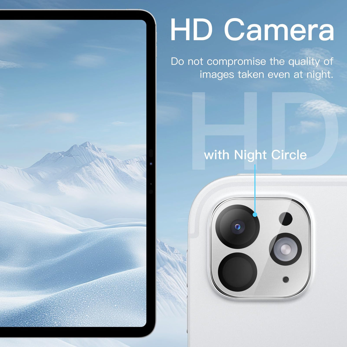 [Compatibility] Specially For Ipad Pro 11-Inch M4 (2024) And Ipad Pro 13-Inch M4 (2024). Do Not Fit Any Other Models. Product Contains 3 Packs Camera Lens Protectors | [Scratch-Resistant] Built With 9H Hardness Tempered Glass. Fully Cover The Camera Lens And Offer Comprehensive Protection Against Scratches And Abrasions | [Hd Clarity] 99.9% Light Transmittance Preserves The Original Resolutions Of Pictures And Videos. Provide An Ultra-Clear Viewing Experience | [Night Shooting Function] Built-In Black Circles Of The Camera Lens Protector Do Not Affect The Normal Use Of Flash Function. Enjoy Your Photography Time At Night Or In The Low Light Condition | [Easy To Install] Precise Cutouts According To The Camera Lens. Easy To Align To Lens Hole And Install Quickly. Strong Adsorption And Non-Shedding