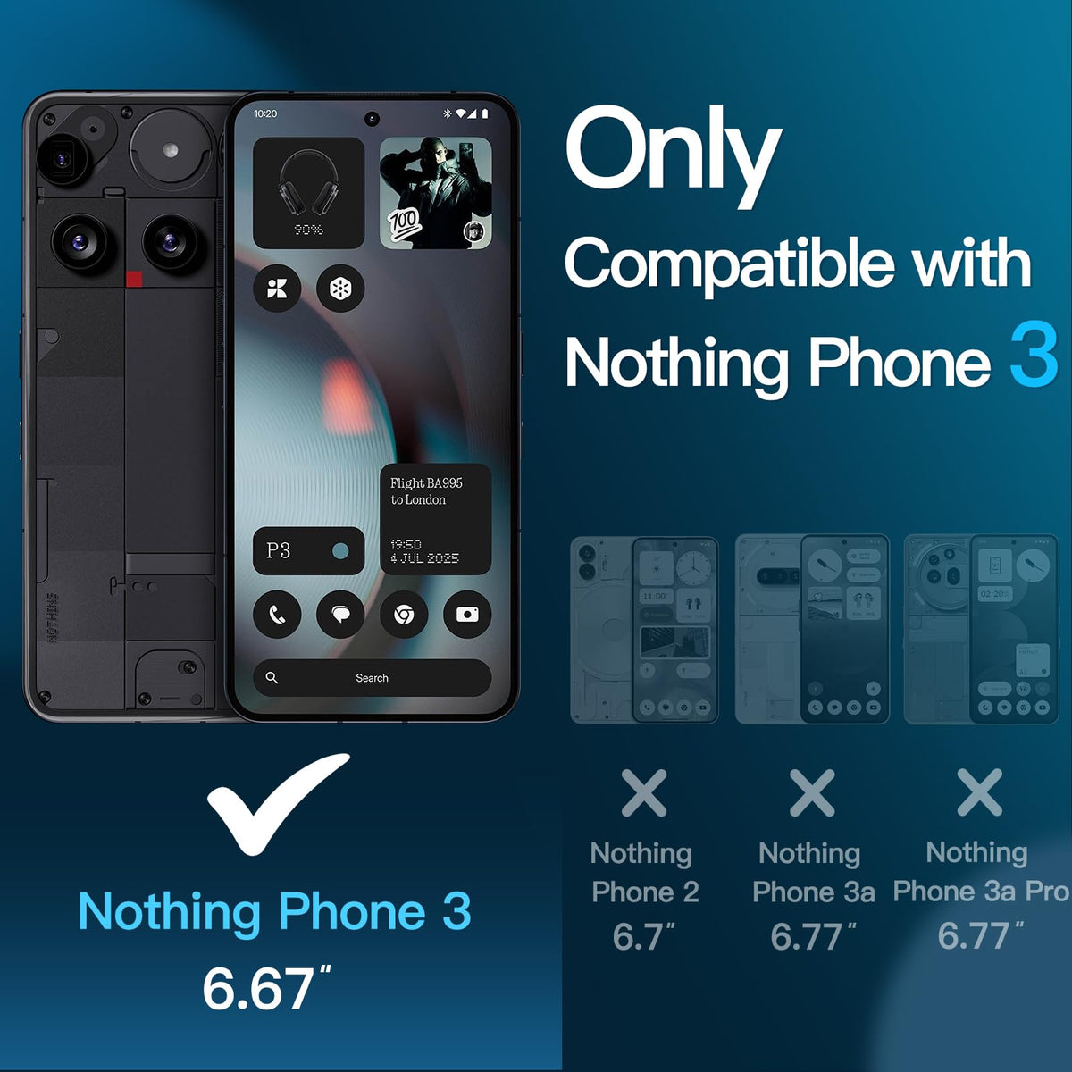 Jetech Screen Protector For Nothing Phone 3, 9H Tempered Glass Film With Easy Installation Tool, Case-Friendly, Hd Clear, 3-Pack