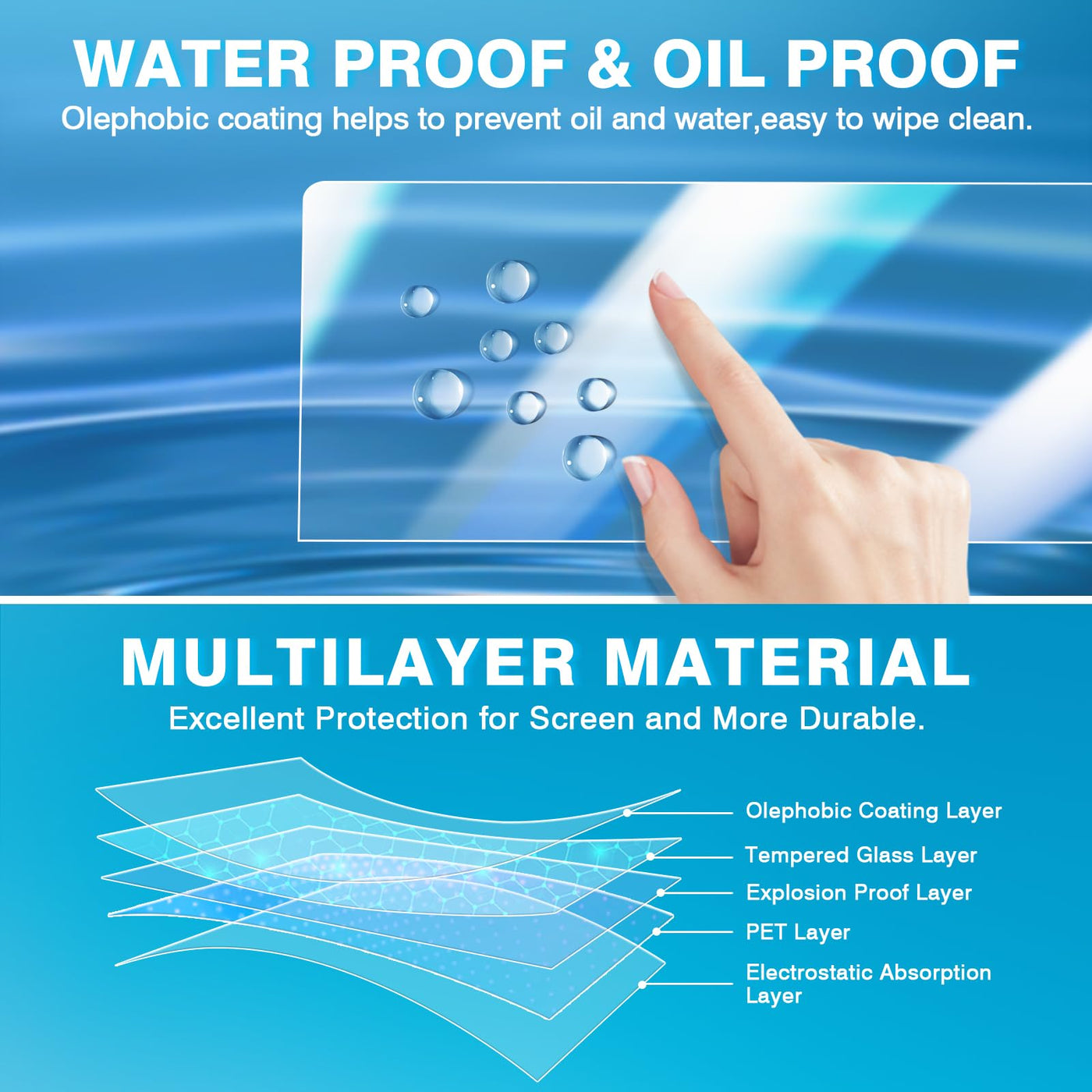 Q: What is included in the installation kit for the screen protector?A: The installation kit comes with the screen protector itself, guide stickers for alignment, a screen cleaning kit to prepare your touchscreen, and a bubble removal tool to ensure a smooth installation without bubbles or residual marks.