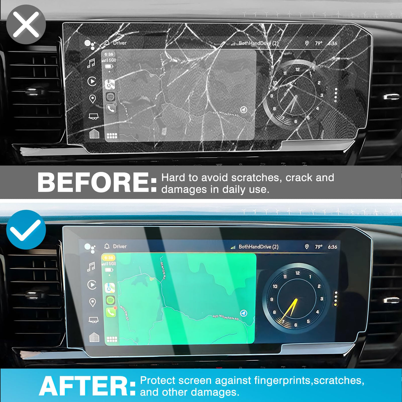 Q: How does the tempered glass screen protector reduce glare?A: The Karltys tempered glass screen protector features an anti-glare coating that minimizes reflections, making it easier to view your touchscreen in bright conditions. This enhances visibility and reduces eye strain during daytime driving.
