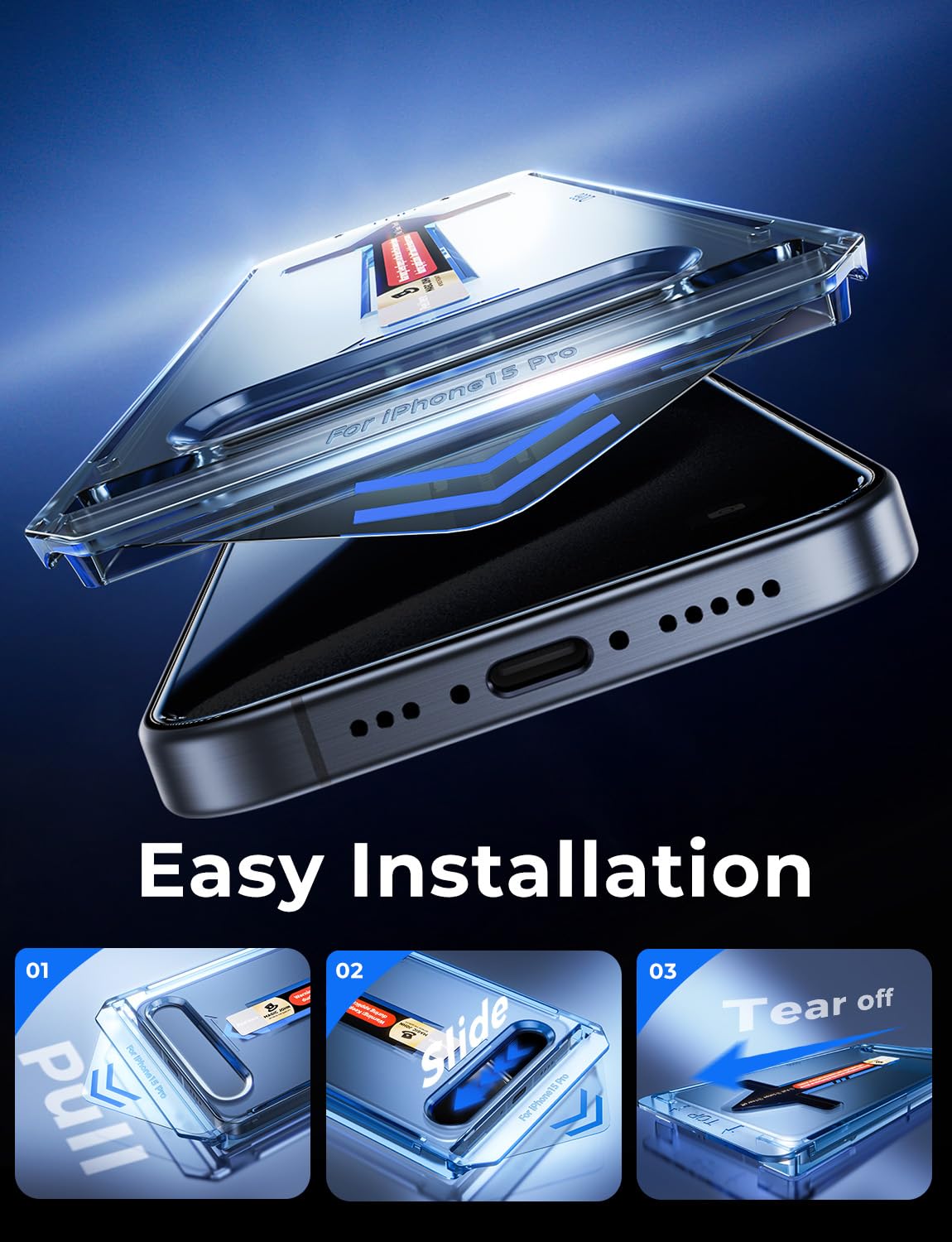 Magic John 2 Pack For Iphone 15 Pro (6.1 Inch) Privacy Glass Screen Protector, Anti-Spy Tempered Glass Film, Auto Dust-Eliminati
