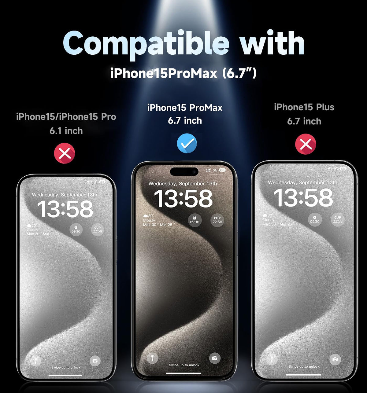 Q: Is the MAGIC JOHN screen protector compatible with other iPhone models?A: No, the MAGIC JOHN tempered glass screen protector is specifically designed for the iPhone 15 Pro Max 6.7 inch and is not compatible with any other iPhone models.