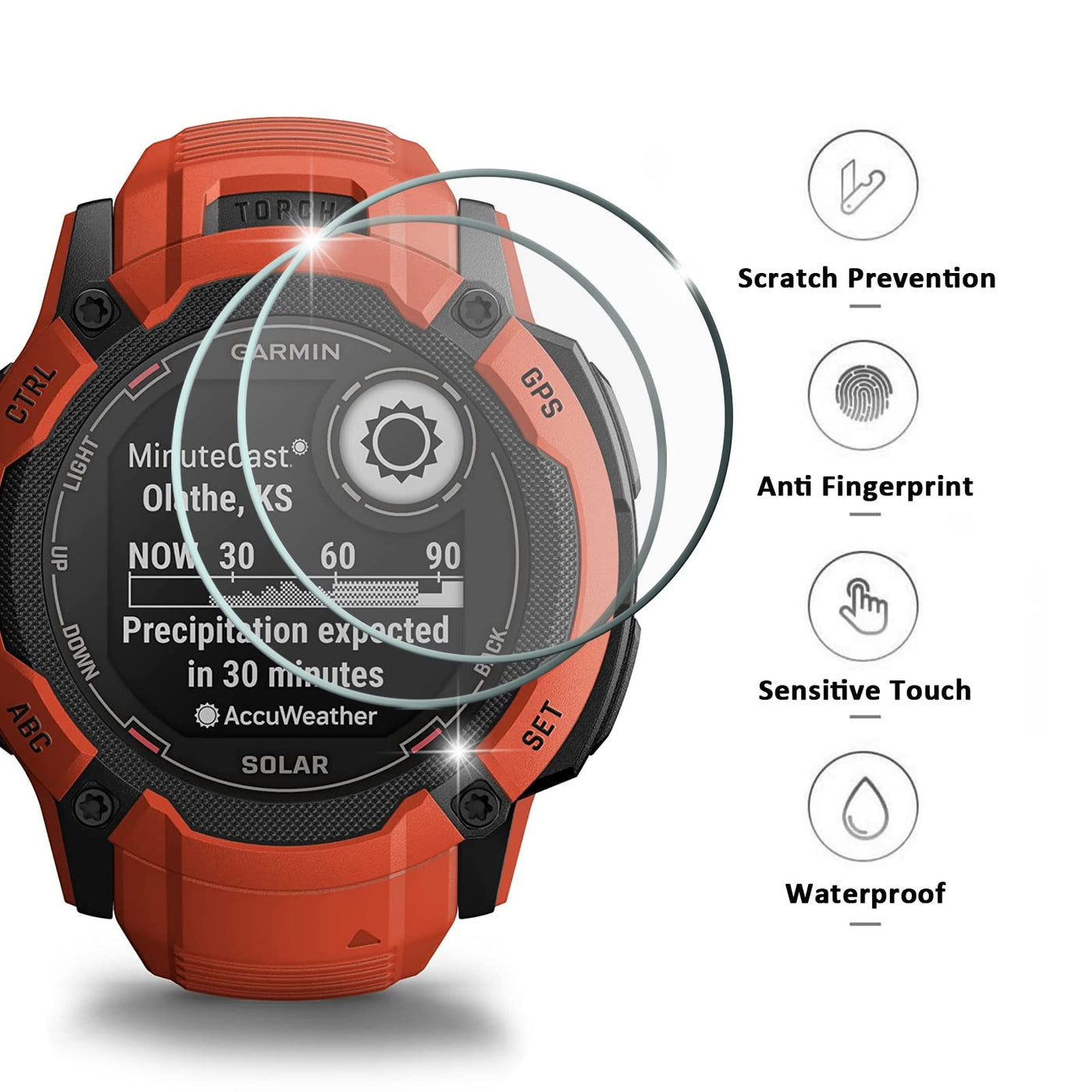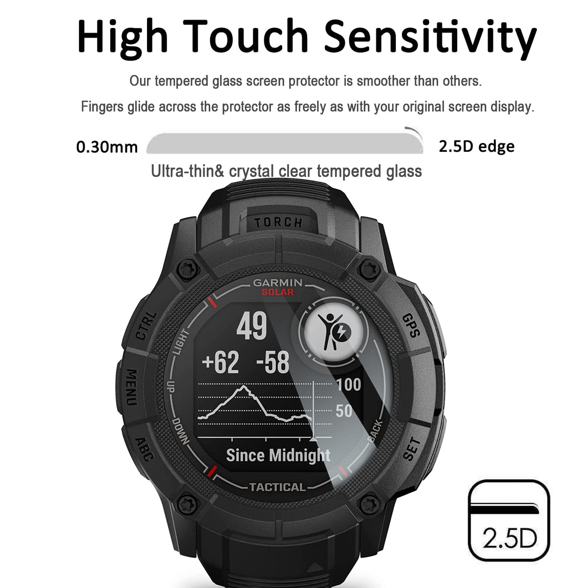 Anti-Dust Plugs + Anti-Scratch Bubble Free Tempered Glass Film Screen Protector For Garmin Instinct 2X/ Instinct 2X