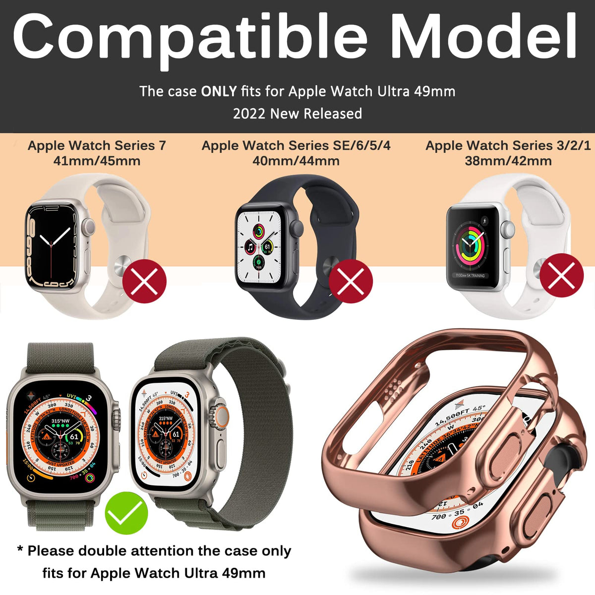 Compatibilitythe Case Specially Design For Apple Watch Ultra 49Mm 2022 Only Not Fits For Apple Watch Other Series, Please Make Sure Your Apple Watch Model Before Odering Case Only, Without Built-In Screen Protector] Remium Electroplating Pc The Apple Watch Ultra Case Made Of High Quality Hard Pc Material, Hard And Not Easy To Be Damaged, Perfectly Fits For The Original Apple Watch Ultra High-Tech Electroplating Surface Will Not Leave Fingerprint And Smooth Touching But Will Not Slide Off, Hardly Fade Off Waterproof, You Can Wipe The Dust Or Other Dirt With Wet Cloth Easily, Always Keep New Looks With No Screen Protector Ultra Slim Design Will Not Add Your Apple Watch Ultra Any Bulk Without Screen Protector In Front Of The Film Keeps The Original Touch Sensitivity, Bring An Original Clear Image Quality, Giving You The Most Convenient Support Wireless Charging Without Taking Off The Case Easy Installation & Full Protection The Apple Watch Ultra 49Mm Case Is Compatible With All Bands, Easy To Install And Remove Without Taking Off Your Watch Band The Case Covers 360 Degree Front And Curved Edges Of The Watch, Covering Your Watch Side And Edges Perfectly To Give Your Watch The Best Protection Each Hole And Button Is Precise Ackage & After-Sales Serviceackage Includes: 1 X Apple Watch Ultra 49Mm Case 1 X After-Sales Card If You Have Any Questions About This Case, Please Feel Free To Contact Us Our Reliable Customer Service Will Be Replied Within 24 Hours
