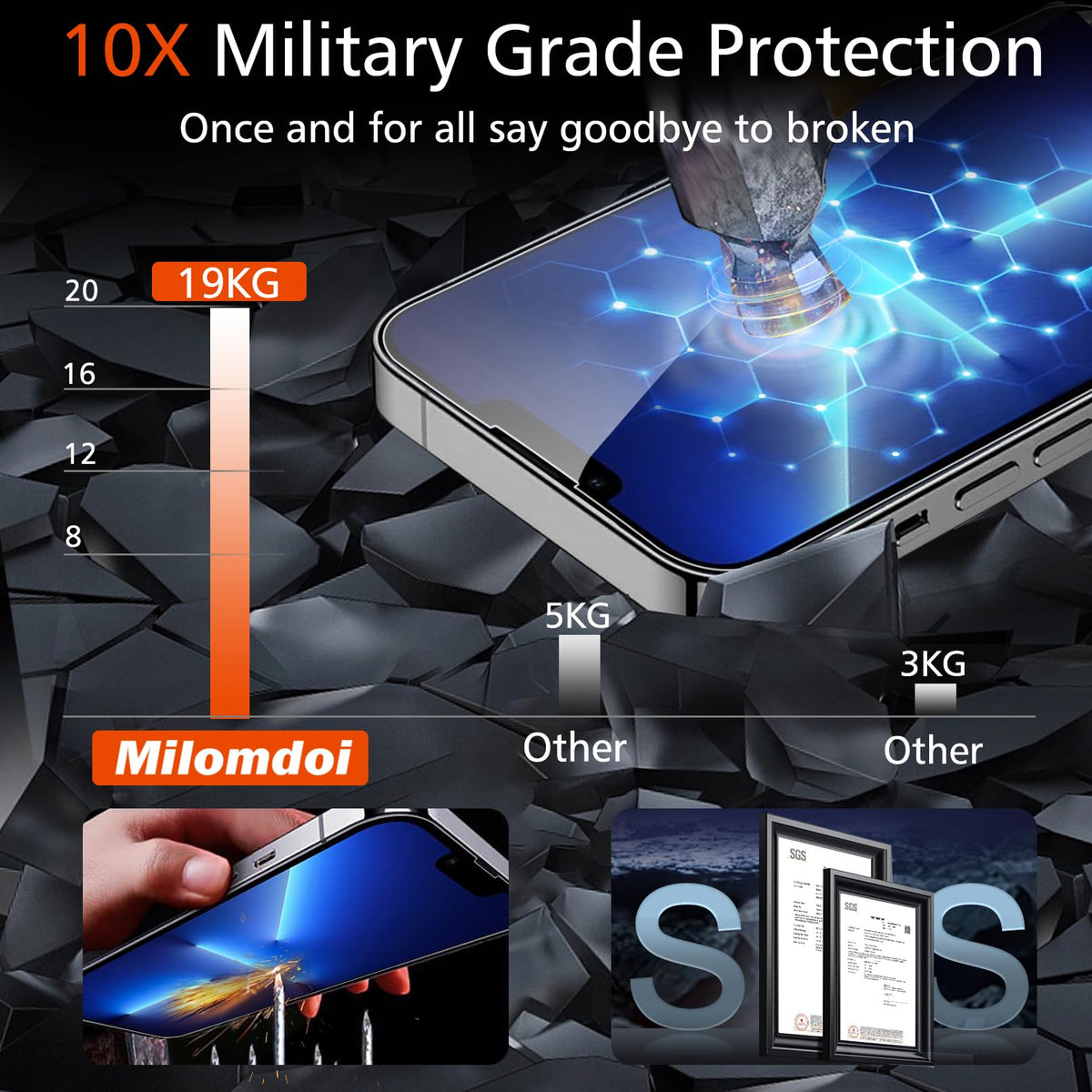 Q: What level of protection does the Milomdoi screen protector offer?A: The Milomdoi screen protector is made from 0.33 mm thick tempered glass with 9H hardness, providing superior protection against drops, scratches, and everyday wear while enhancing your device's visibility.