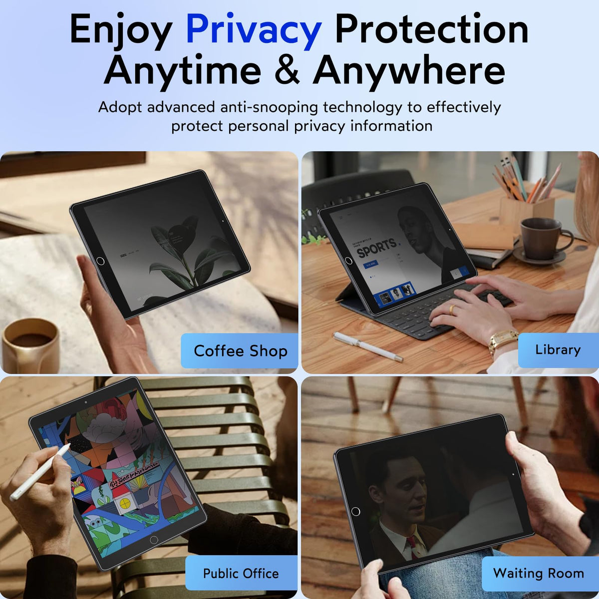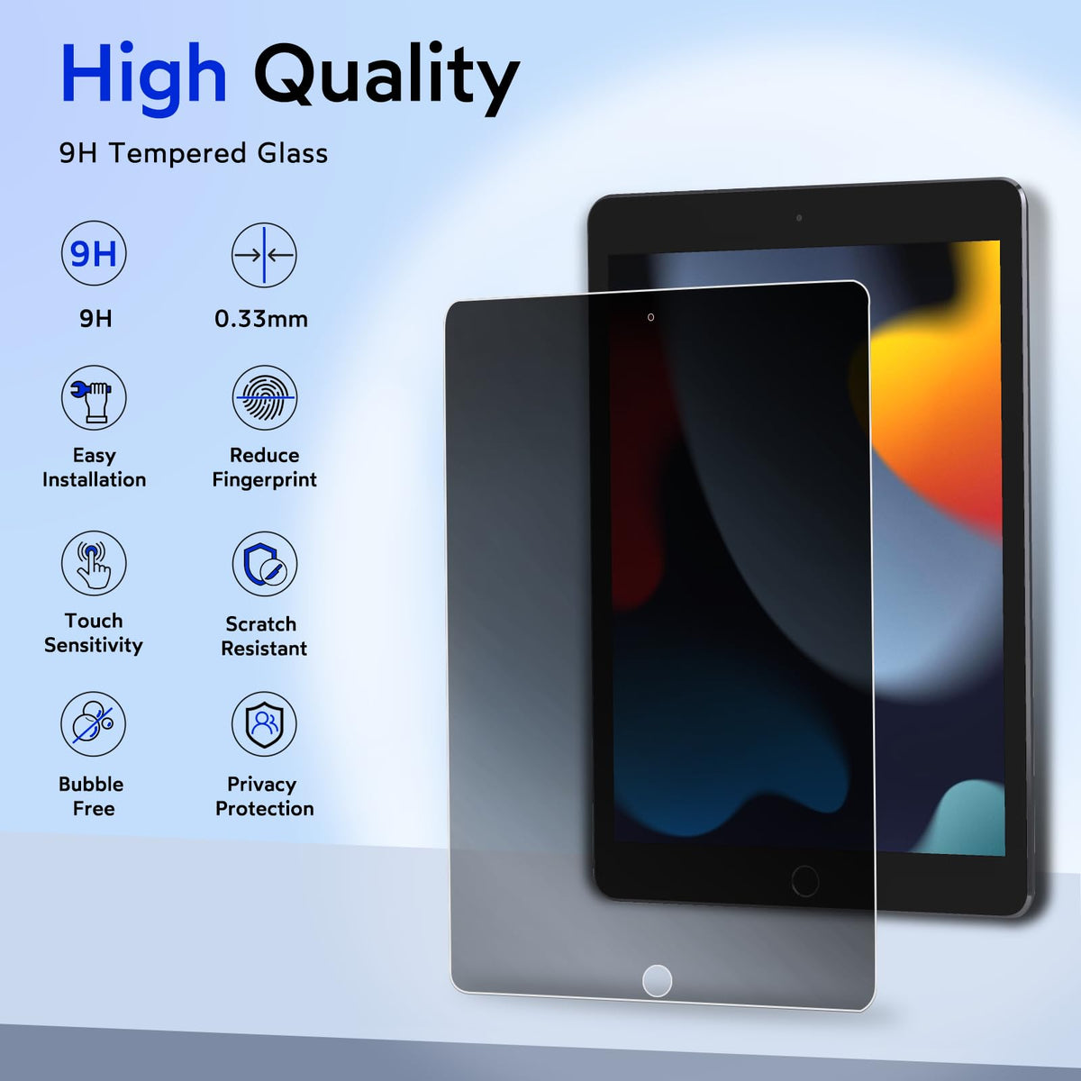 This Screen Protector Ipad 9Th / 8Th / 7Th Generation 10.2 Inch (2021 / 2020 / 2019) Was Developed To Make It Work Better On Your Device. It Uses Advanced 28 Anti-Snooping Technology, When The Viewing Angle Exceeds 28, Both Sides Of The Screen Are Invisible Areas, Super Privacy Protection Can Prevent Strangers In Public Places And People Around You To Snoop On Your Private Information, So That You Are More At Ease When Using Ipad On Various Occasions, Do Not Worry About Others Peeping Your Information, Reduce Embarrassment In Life And Work. Note: Only Horizontal Back Peeking Is Supported, Not Vertical Back Peeking. In Order To Protect The Original Screen Of The Equipment From Being Scratched And Reduce Wear Caused By Daily Use, You Can Choose This 9H Ultra-Hard Glass Ultra-Privacy Screen Protective Film, Which Uses High-Quality Tempered Glass With 9H Hardness And Strong Structure To Provide More Effective Security Protection For Your Equipment. The Oil-Repellent Layer On The Surface Not Only Protects Against Oil And Fingerprints, But Also Makes Cleaning The Screen Easy And Easy. Installing This Privacy Screen Still Gives You Fast, Accurate Responses And A Comfortable Experience. You Can Rest Assured That Most Of The Various Matching Enclosures On The Market Are Compatible With It. It Is Equipped With A Mounting Bracket To Make The Installation Of The Screen Protector Easy And Minimize The Entry Of Bubbles And Dust. The Installation Process Is Simple And Convenient. Please Refer To Our Installation Guide For The Installation Process.