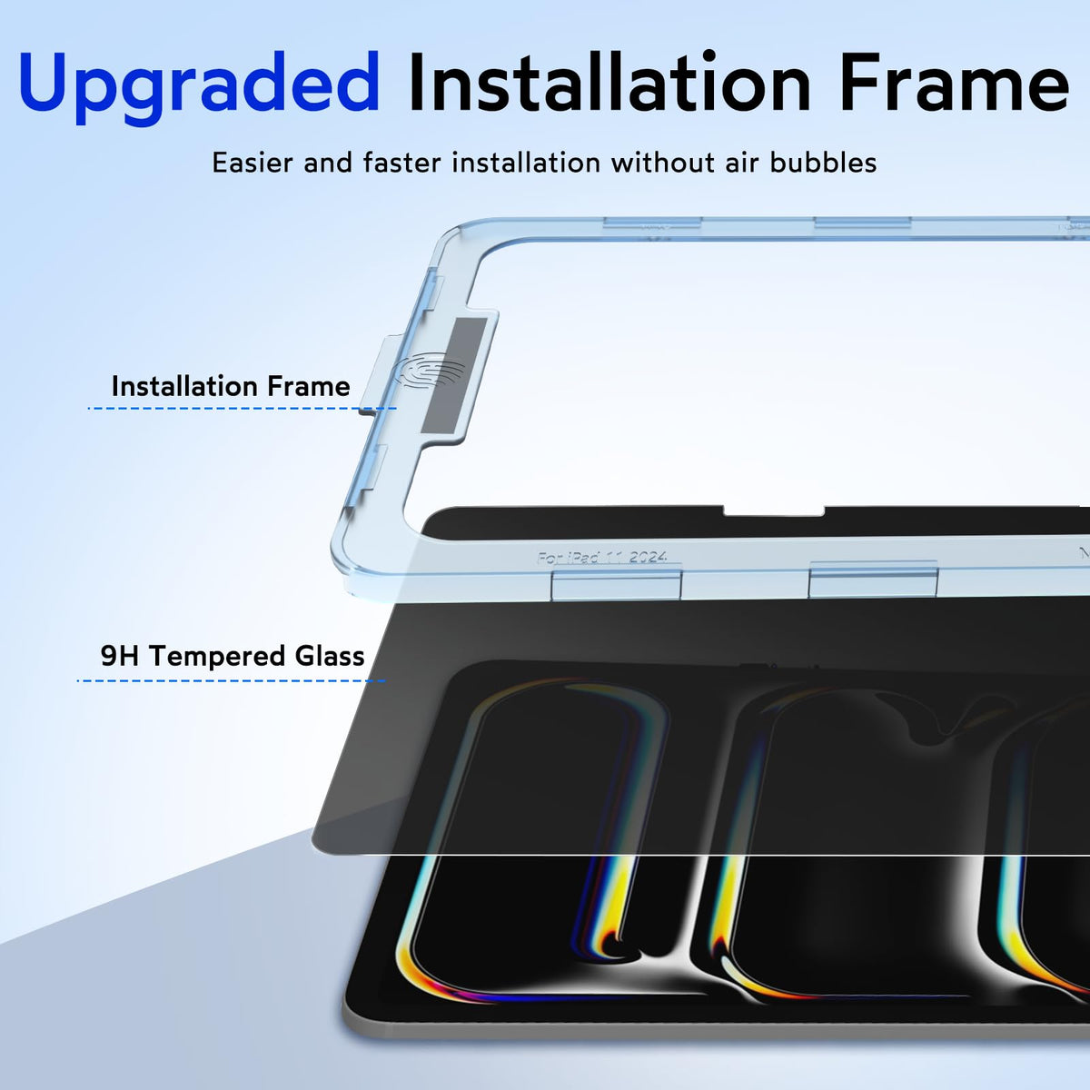 This Screen Protector Ipad Pro 11 Inch 2024 Was Developed To Make It Work Better On Your Device. It Uses Advanced 28 Anti-Snooping Technology, When The Viewing Angle Exceeds 28, Both Sides Of The Screen Are Invisible Areas, Super Privacy Protection Can Prevent Strangers In Public Places And People Around You To Snoop On Your Private Information, So That You Are More At Ease When Using Ipad On Various Occasions, Do Not Worry About Others Peeping Your Information, Reduce Embarrassment In Life And Work. Note: Only Horizontal Back Peeking Is Supported, Not Vertical Back Peeking. In Order To Protect The Original Screen Of The Equipment From Being Scratched And Reduce Wear Caused By Daily Use, You Can Choose This 9H Ultra-Hard Glass Ultra-Privacy Screen Protective Film, Which Uses High-Quality Tempered Glass With 9H Hardness And Strong Structure To Provide More Effective Security Protection For Your Equipment. The Oil-Repellent Layer On The Surface Not Only Protects Against Oil And Fingerprints, But Also Makes Cleaning The Screen Easy And Easy. Installing This Privacy Screen Still Gives You Fast, Accurate Responses And A Comfortable Experience. You Can Rest Assured That Most Of The Various Matching Enclosures On The Market Are Compatible With It. It Is Equipped With A Mounting Bracket To Make The Installation Of The Screen Protector Easy And Minimize The Entry Of Bubbles And Dust. The Installation Process Is Simple And Convenient. Please Refer To Our Installation Guide For The Installation Process.