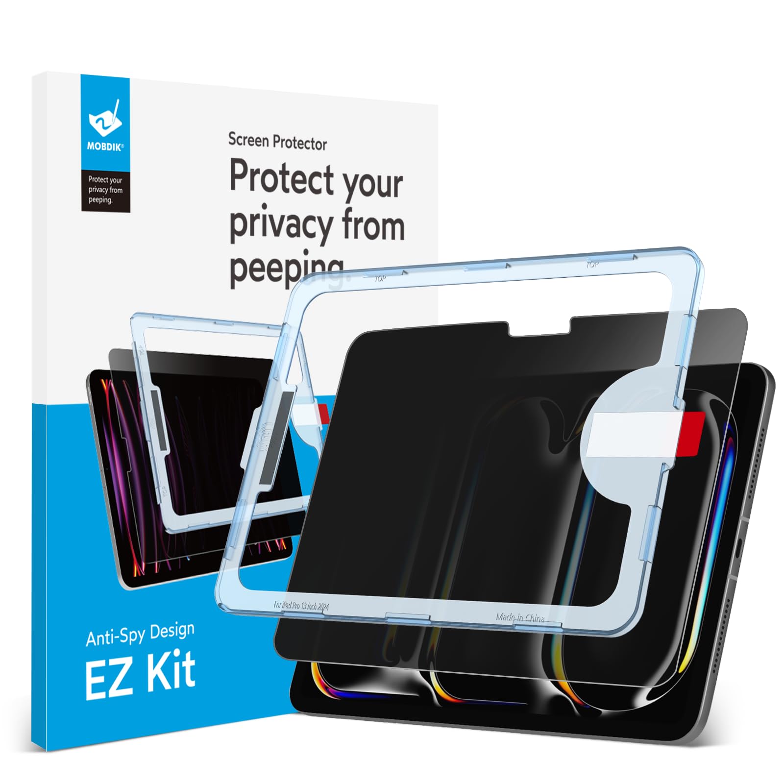 Mobdik Privacy Screen Protector Compatible With Ipad Pro 13 Inch 2024 M4 [Anti Spy] [9H Tempered Glass] [Ez Kit] 1 Pack