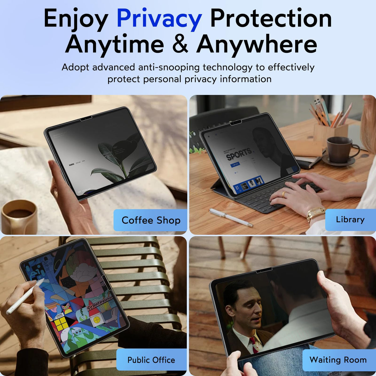 This Screen Protector Ipad Pro 13 Inch Was Developed To Make It Work Better On Your Device. It Uses Advanced 28 Anti-Snooping Technology, When The Viewing Angle Exceeds 28, Both Sides Of The Screen Are Invisible Areas, Super Privacy Protection Can Prevent Strangers In Public Places And People Around You To Snoop On Your Private Information, So That You Are More At Ease When Using Ipad On Various Occasions, Do Not Worry About Others Peeping Your Information, Reduce Embarrassment In Life And Work. Note: Only Horizontal Back Peeking Is Supported, Not Vertical Back Peeking. In Order To Protect The Original Screen Of The Equipment From Being Scratched And Reduce Wear Caused By Daily Use, You Can Choose This 9H Ultra-Hard Glass Ultra-Privacy Screen Protective Film, Which Uses High-Quality Tempered Glass With 9H Hardness And Strong Structure To Provide More Effective Security Protection For Your Equipment. The Oil-Repellent Layer On The Surface Not Only Protects Against Oil And Fingerprints, But Also Makes Cleaning The Screen Easy And Easy. Installing This Privacy Screen Still Gives You Fast, Accurate Responses And A Comfortable Experience. You Can Rest Assured That Most Of The Various Matching Enclosures On The Market Are Compatible With It. It Is Equipped With A Mounting Bracket To Make The Installation Of The Screen Protector Easy And Minimize The Entry Of Bubbles And Dust. The Installation Process Is Simple And Convenient. Please Refer To Our Installation Guide For The Installation Process.