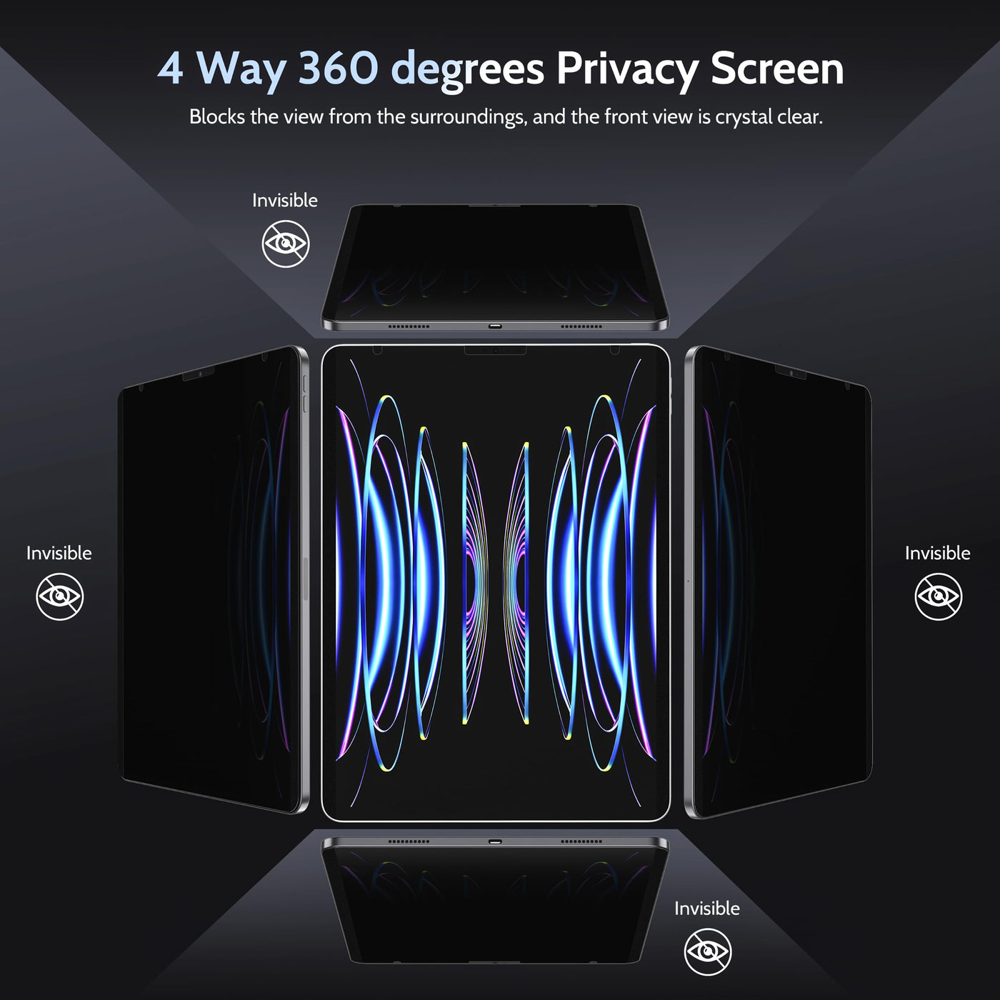 Peslv 4 Way Magnetic Privacy Screen Protector For Ipad Pro 12.9 Inch 2018 2020 2021 2022, Removable 360 Degree Spy Private Black
