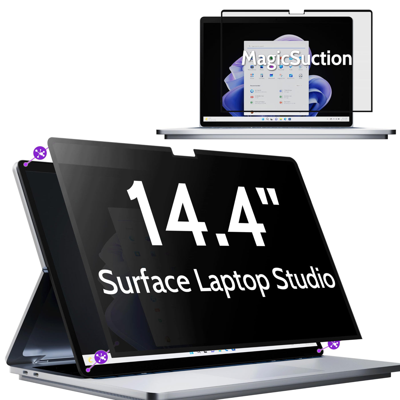 Peslv Privacy Screen For 14.4 Inch Surface Laptop Studio 2/1, Magicsuction Removable Anti Spy Black Protector, Glare Blue Light