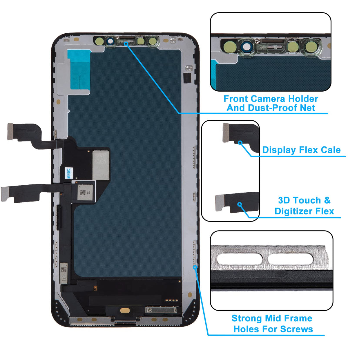 Only For Iphone Xs Max 65 Inch, Not For X, Xs And Xr The Screen Replacement Is Without Ear Speaker, Front Camera, Proximity Sensor, So Swap Them Out From Your Old Screen And Install Them Please Note: 1 Do Not Apply Pressure To The Corners Of The Inner Glass Panel 2 Make Sure Each Screw Is Installed Back To Its Original Hole 3 Be Gentle And Cautions To The Flex Cable Connectors When Installing 4 Please Check The Screen And Make Sure All Flex Cables Are In Good Condition And There Is No Debris On The Connector 5 Do Not Over-Bend Or Use Excessive Force To Tear It 6 Please Please Disconnect Battery Flex Cable Of Your Phone Before You Install Our New Screen, This Is Very Important Otherwise, It Will Be Easy For Your Phone To Short Circuit Problem Solution If Your Phone Has Some Problems After Installed For Example, Cannot Turn On, No Touch, Flashing, Lines, Darker A Corner On Screen Etc, Please Follow These Steps: 1 Disconnect Battery Flex, Reinstall All Flex Cables From The Motherboard And Double Check All Flex Cable Is In Good Condition 2 Restart Your Phone: Press Volume + Button One Time First, Then Press Volume - Button One Time, Finally, Holding Power Button Pressed For Min 15 Sec, After Few Mins, Turn On The Phone Or Reconnect Your Battery Flex Package Include: 1 X Screen Assembly1 X High Qulity Repair Tools Set1 X Sim Card Pin1 X 10D Full Coverage Hardness Tempered Glass1 X Non-Dust Cloth1 X Detailed Repair Flowchart1 X Waterproof Adhesiveif You Have Any Questions, Please Donat Hesitate To Contact Seller, We Will Try Our Best To Solve The Problem So Long As The Products Cannot Work Without Human Factors, We Will Change New For You Always Free Your Good Comments And Satisfaction Is Our Greatest Motivation Thanks For Your Buying, Your Choice Will Be The Most Correct, Dont Worry