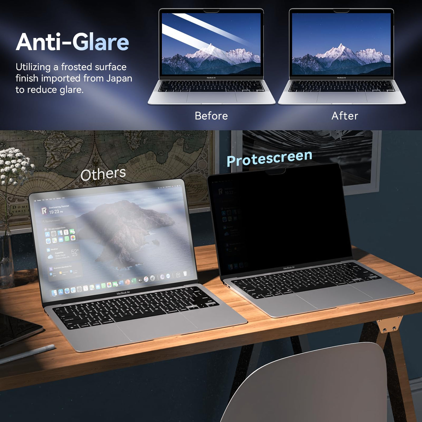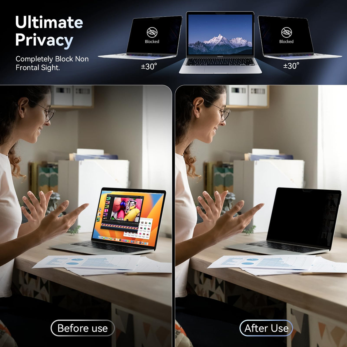 Why Choose Our Privacy Screen? 1. Protect Sensitive Data A Computer Privacy Screen Physically Protects On-Screen Data By Obscuring The View Outside Of The Area Around You. This Is The Perfect Solution For Using Any Device (Personal Or Business) Outside Of A Secure Area. 2. Prevent Eye Strain Reduction In Blue Light From The Monitor And Uv Glare From The Sun And Other External Lights Relieves Pressure On Your Eyes. With Less Harmful Light Hitting Them, You Squint Less, And Your Eye Muscles Can Relax. This Helps You Sleep Better And Prevents Eye Strain While Youre Awake. 3. Provide Peace Of Mind Privacy Screens Arent Just Blue Light Filters And Data Protectors. They Also Protect Your Screen From Damage. Using A Computer Privacy Screen, Youre Installing An Important Security Tool.