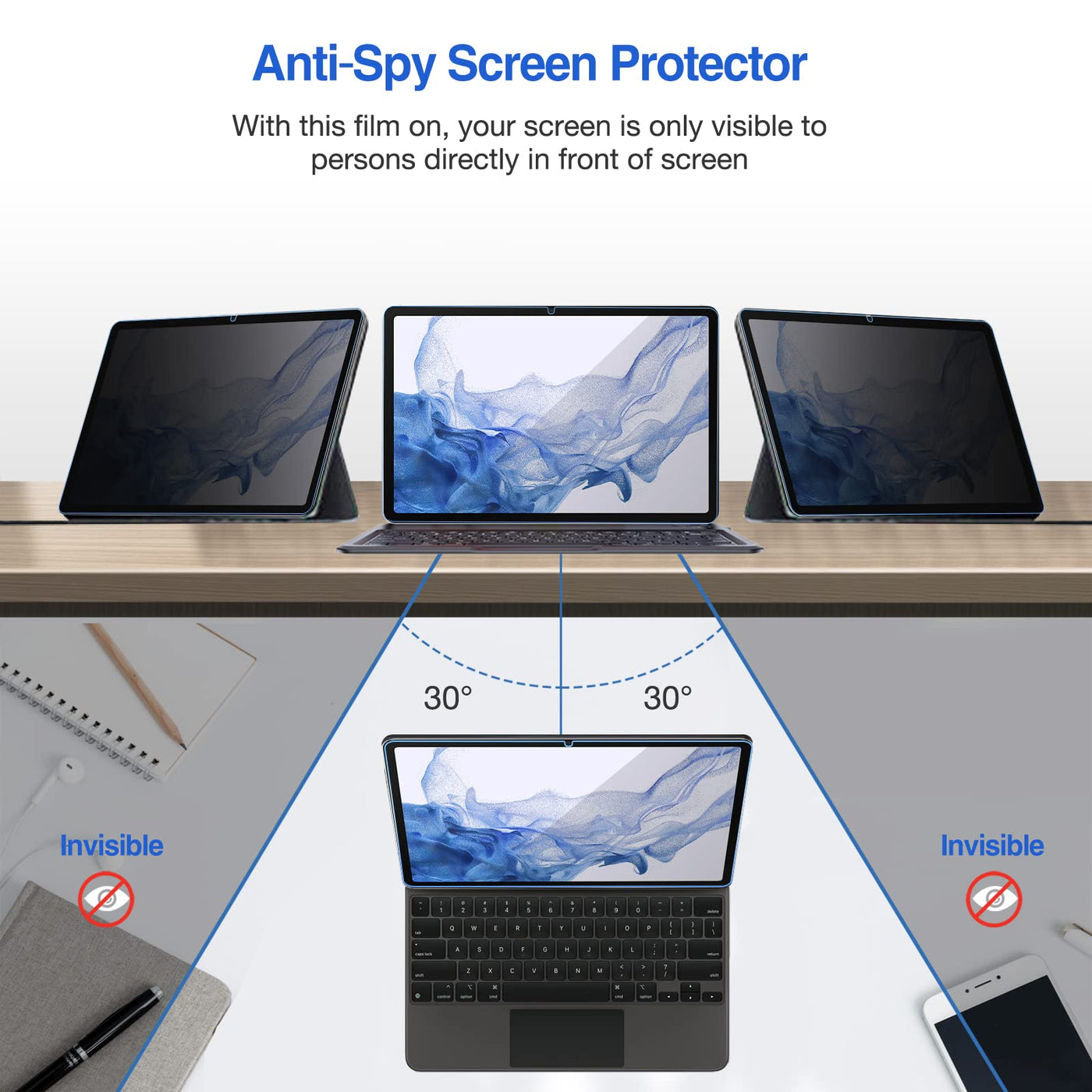 Procase Privacy Screen Protector For Galaxy Tab S9 Fe 10.9/ Tab S9 11 2023/ Galaxy Tab S8 2022/ Galaxy Tab S7 2020, Anti-Spy Tem