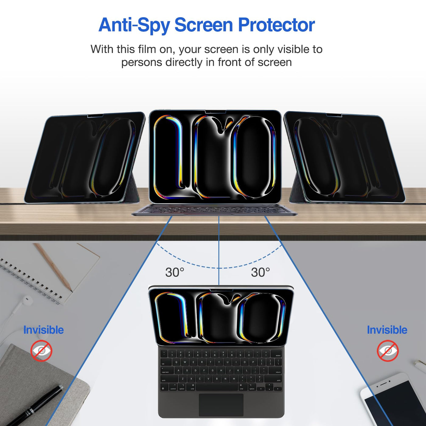 Procase Privacy Screen Protector For Ipad Pro/Air 13 Inch 2024; Anti Spy Tempered Glass Film Guard For 2024 Ipad Pro 7Th/Ipad Ai