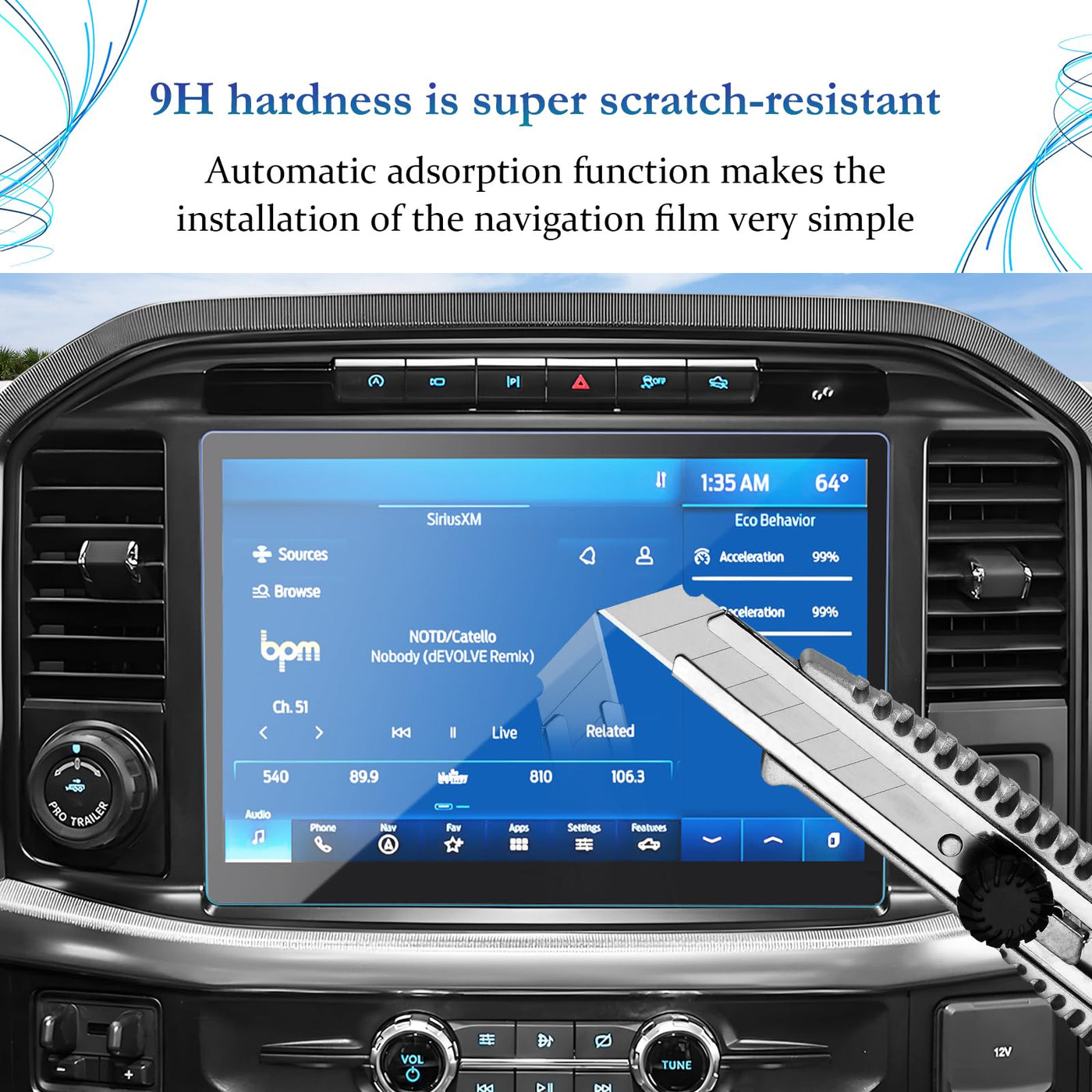 Which Kind Of Protector Should You Choose? If You Wanna The Protector For Your 2021 2022 2023 2024 2025 F-150 Navigation, The Tempered Glass Protector Is Your First Choice: 1.9H Hardness Will Protector Your 2021-2024 2025 F-150 / 2022-2024 F-150 Lightning / 2022-2024 Expedition Screen From Scratch, Shatter, Provide Comprehensive Protection 2.Special Coating Will Repel Oil Left From Your Fingerprints, Easy To Wipe And Keep Your 2022-2024 F-150 Lightning Screen Brand New 3.0.26Mm Thickness Ensures A Better Smooth Touching Feeling, At The Same Time, Restore The Color Of The 2021 2022 2023 2024 2025 F-150 Sync4 Screen 4.2.5D Arc Edge Reduce The Probability Of Broken Screen 5.Automatic Absorption Make The Installation Easier, Just Need Soft Finger Touch To Complete It