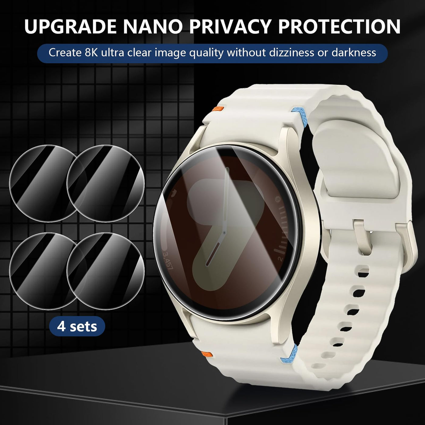 Suoman 4 Pack For Samsung Galaxy Watch 6/7/Fe 40Mm Privacy Screen Protector, [Anti Peeping] 9H Hardness Ultra Thin Tempered Glas