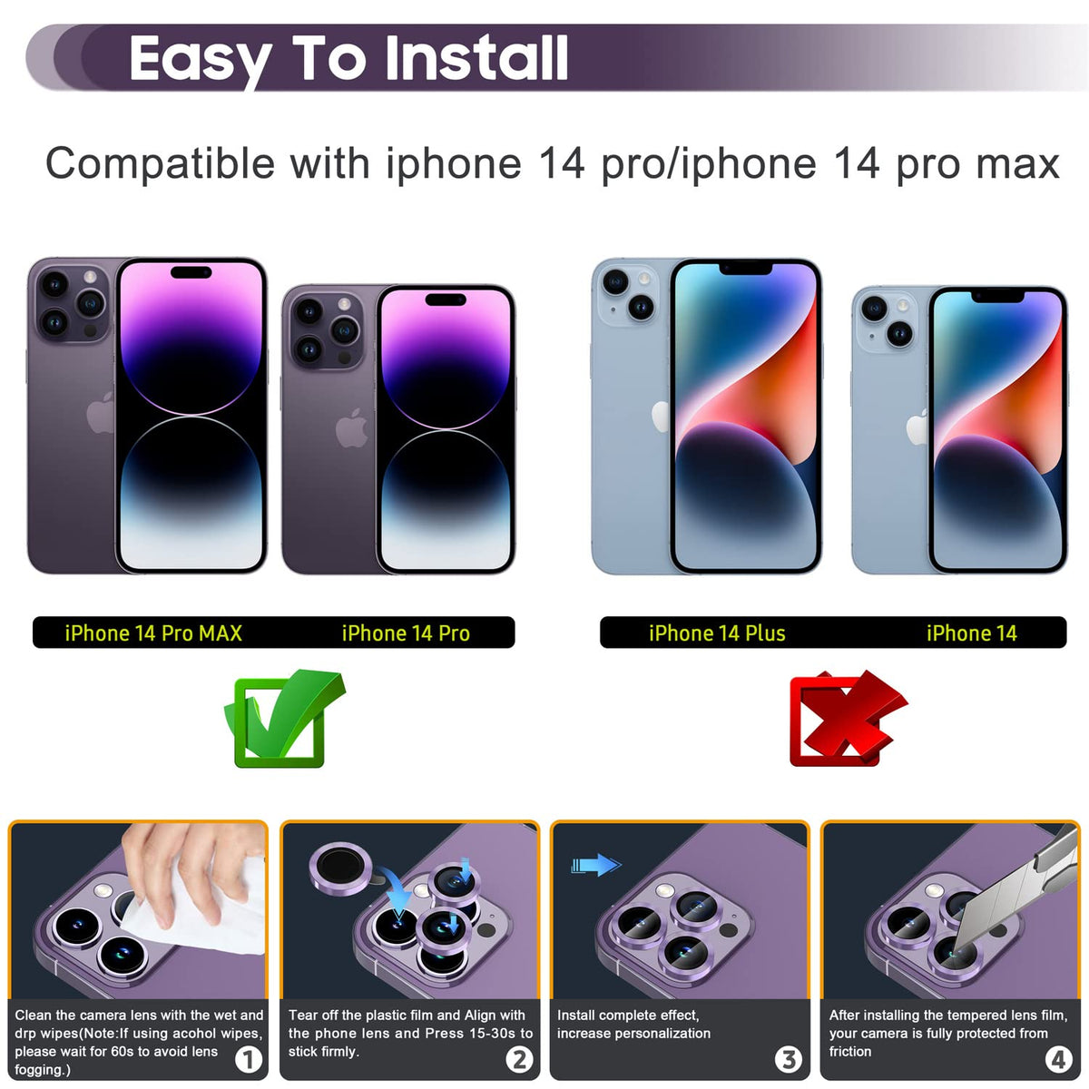 Compatible Model: Only Fit For Iphone 14 Pro And For Iphone 14 Pro Max Camera Lens Protector Do Not Fit For Iphone 14 14 Max, Please Make Sure Before You Purchaseunction And Features Aluminum Alloy Explosion-Proof Camera Lens Protector, Strong Protection Of Your Lens Bubble-Free] : Easy To Install And There Is No Bubble Or Other Bad Effect Camera Lens Cover] : Product With All-Round Protection Of The Camera, You Can Hardly See It There, Full Protectionnot Affect Night Shots] : It Will Not Affect The Effect Of Using Flash Photography At Night Welcome To Contact Us If You Have Any Question About Product, Installation Or Use Process Suoman Will Do The Best Service For You, Until Solve Your Problem