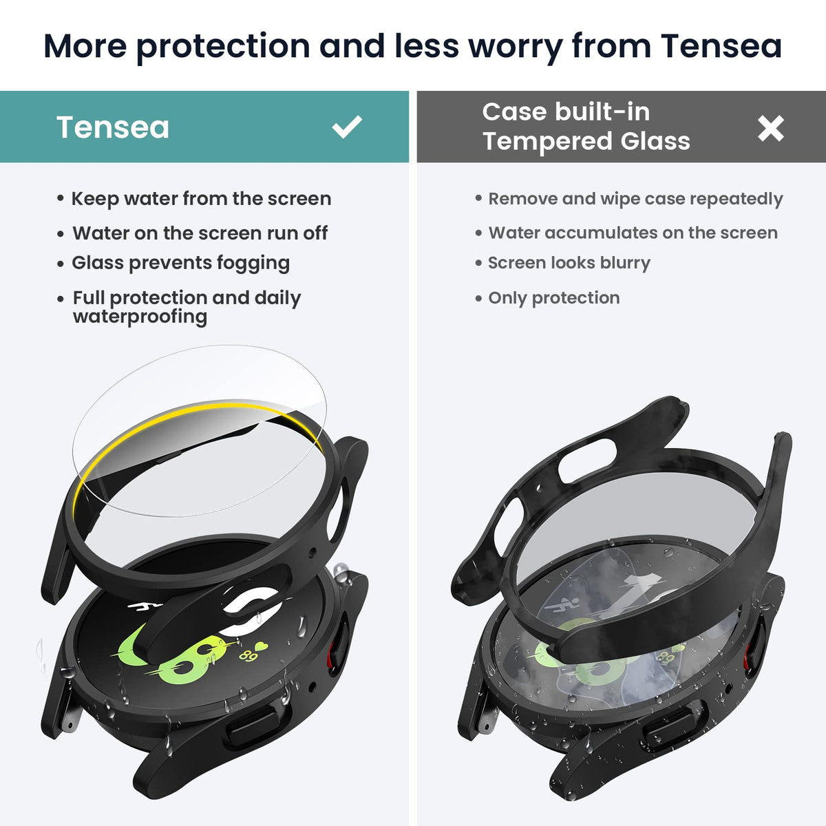 Q: How does the Tensea screen protector improve touch sensitivity?A: The Tensea screen protector features a smooth touch surface that prevents water and fog from interfering with the touch screen. This ensures that users can seamlessly interact with their watch without needing to remove the case during activities like showering or exercising.