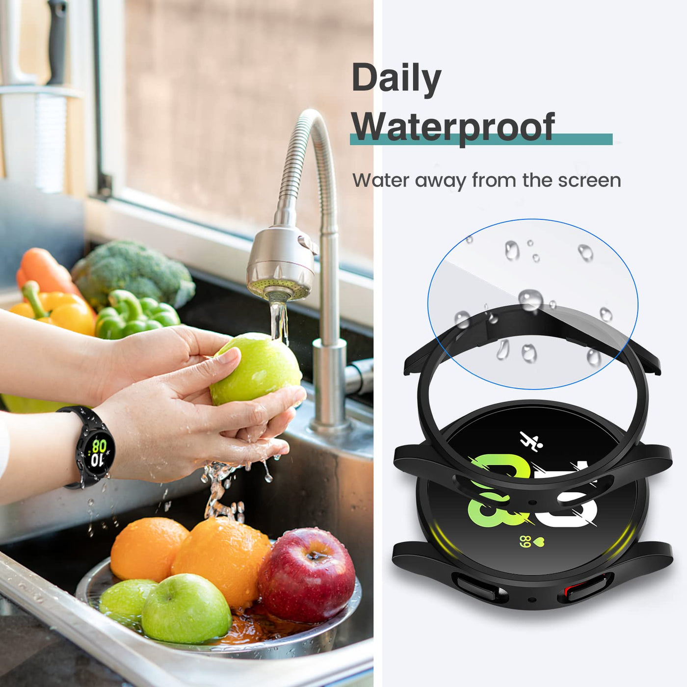 Tensea [4+4Pack] For Samsung Galaxy Watch 5 2022 & 4 2021 Screen Protector And Case 44Mm, Anti Fog Tempered Glass Protective Film & Hard Pc Bumper, Face Cover Set